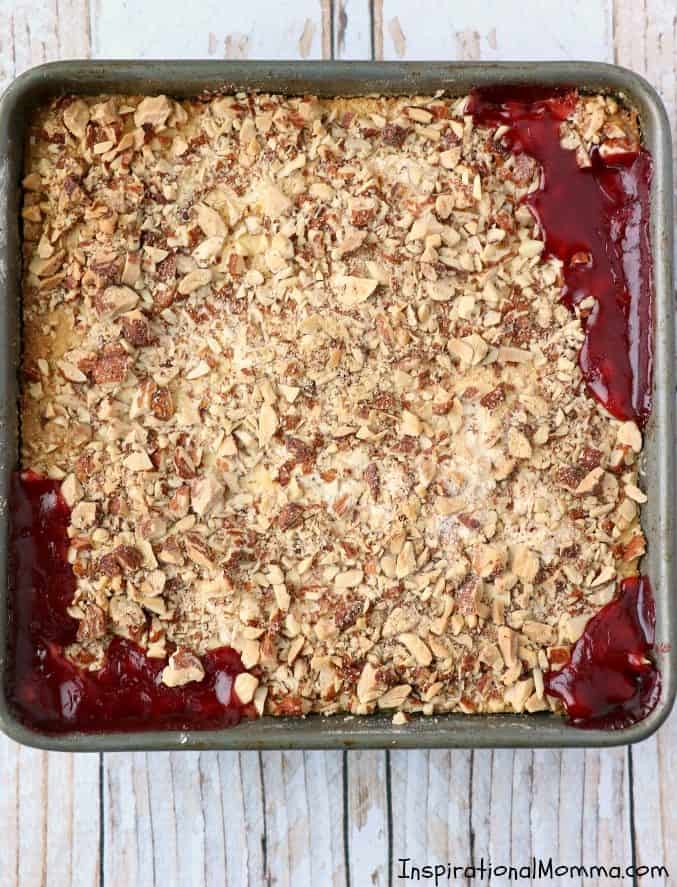 - Sprinkle dry cake mix over top of the cherry pie filling.
