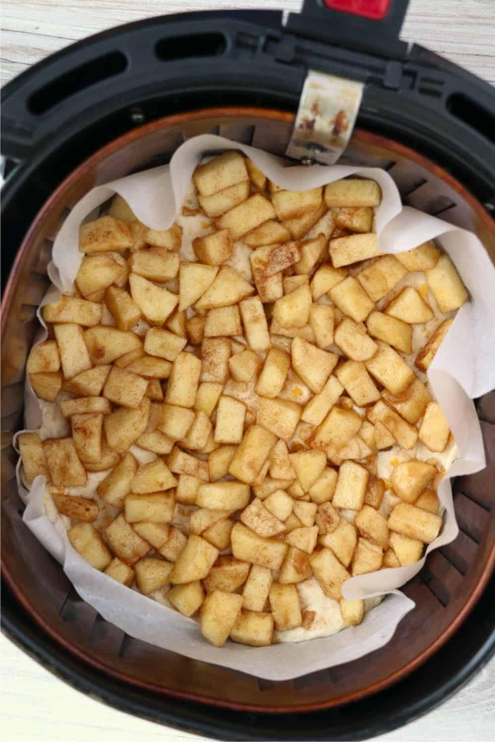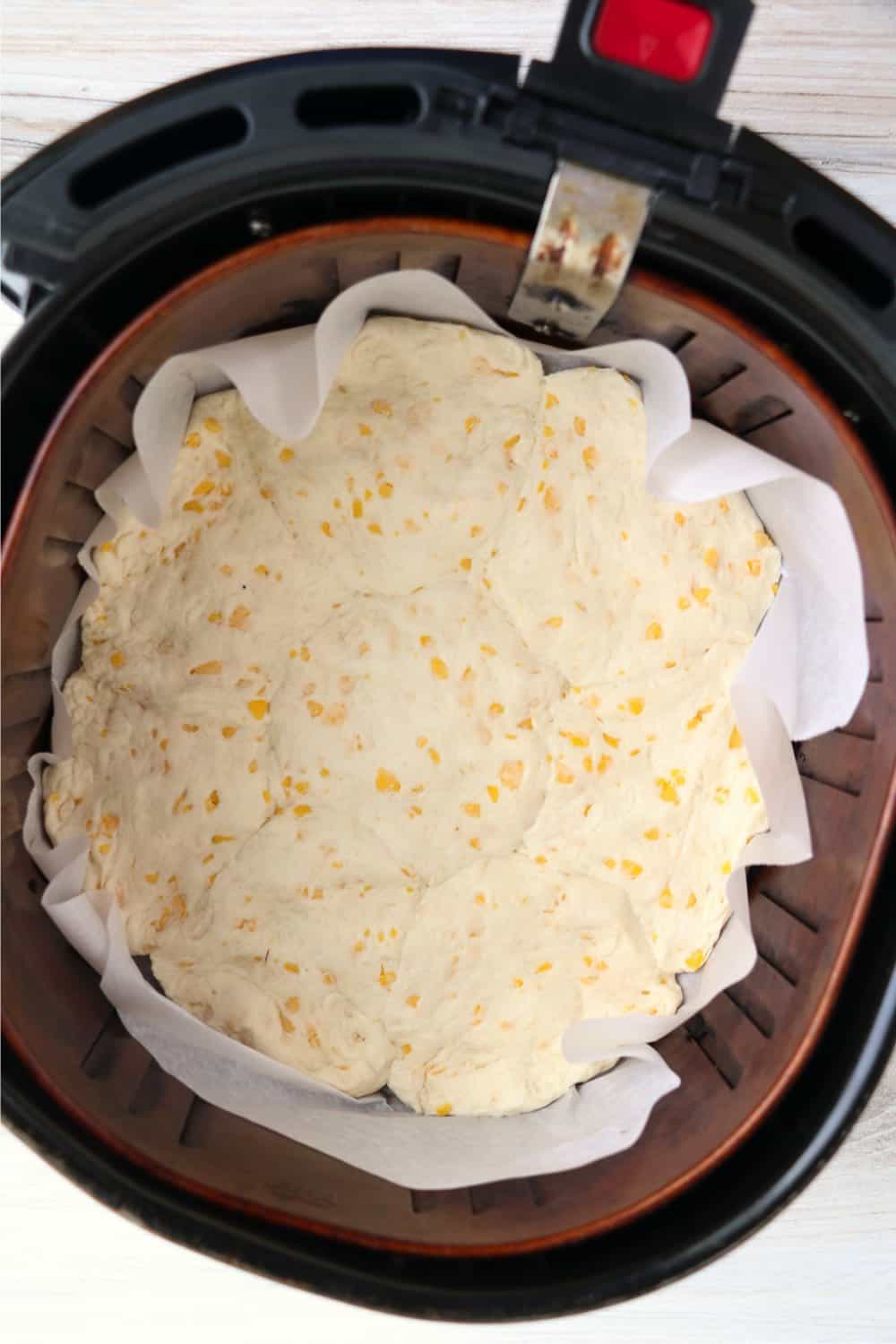 - Line your air fryer basket with parchment paper.