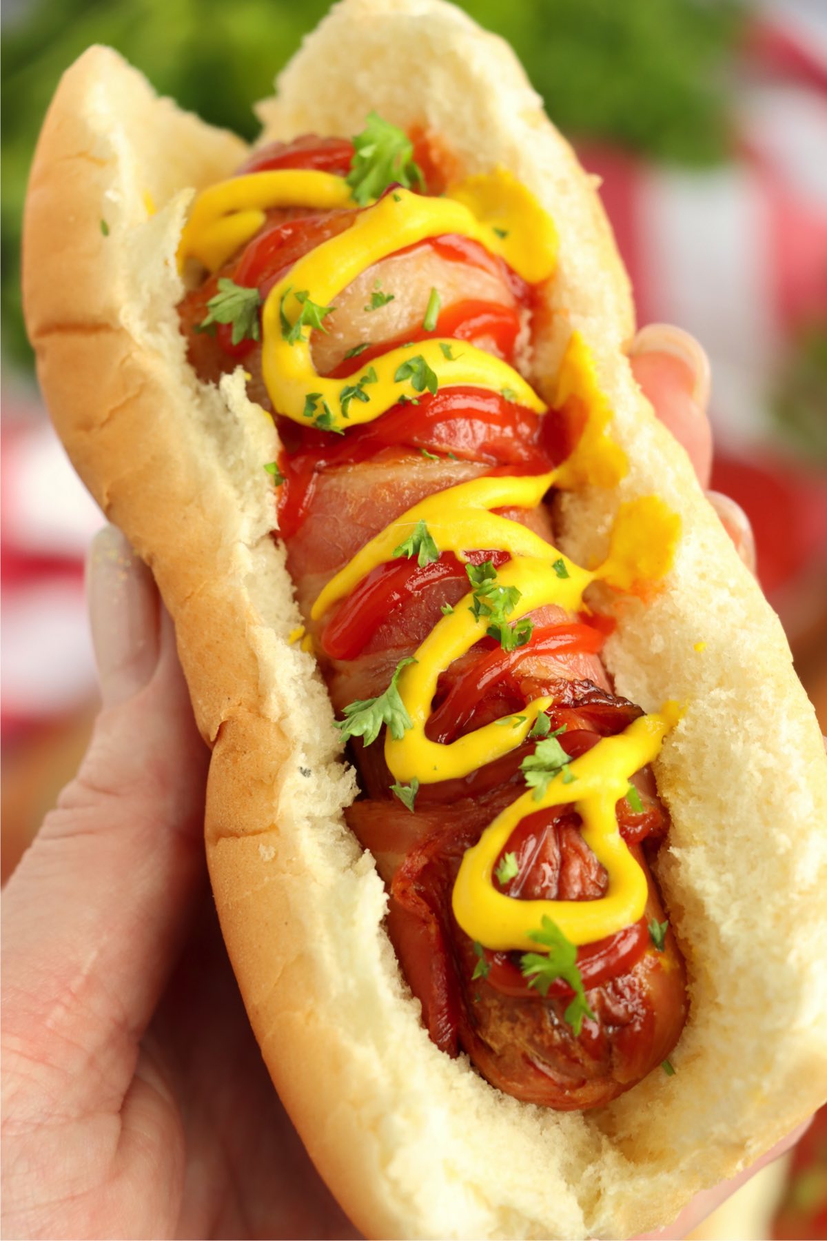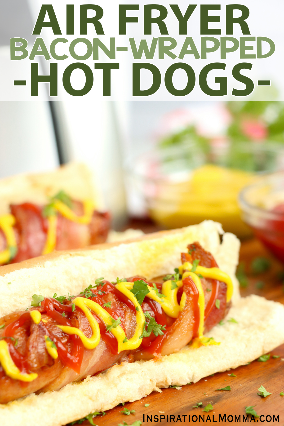 Air fryer bacon wrapped hot dogs are a tasty twist on a classic. Juicy, plump hot dogs wrapped in crispy bacon? Oh, yes!