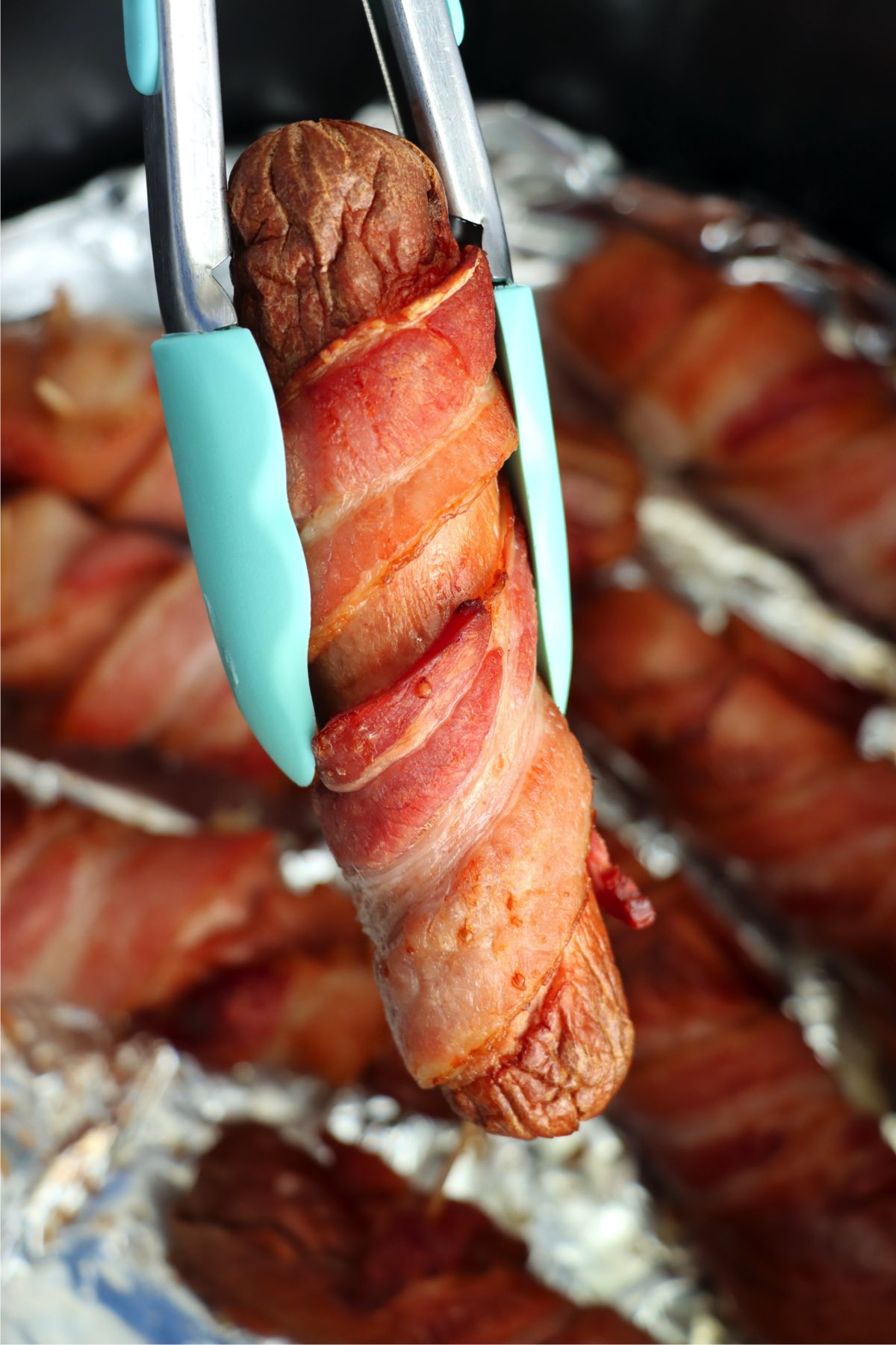 Leave space between your bacon wrapped hot dogs in the air fryer basket. They need good air flow to get the bacon nice and crispy.
