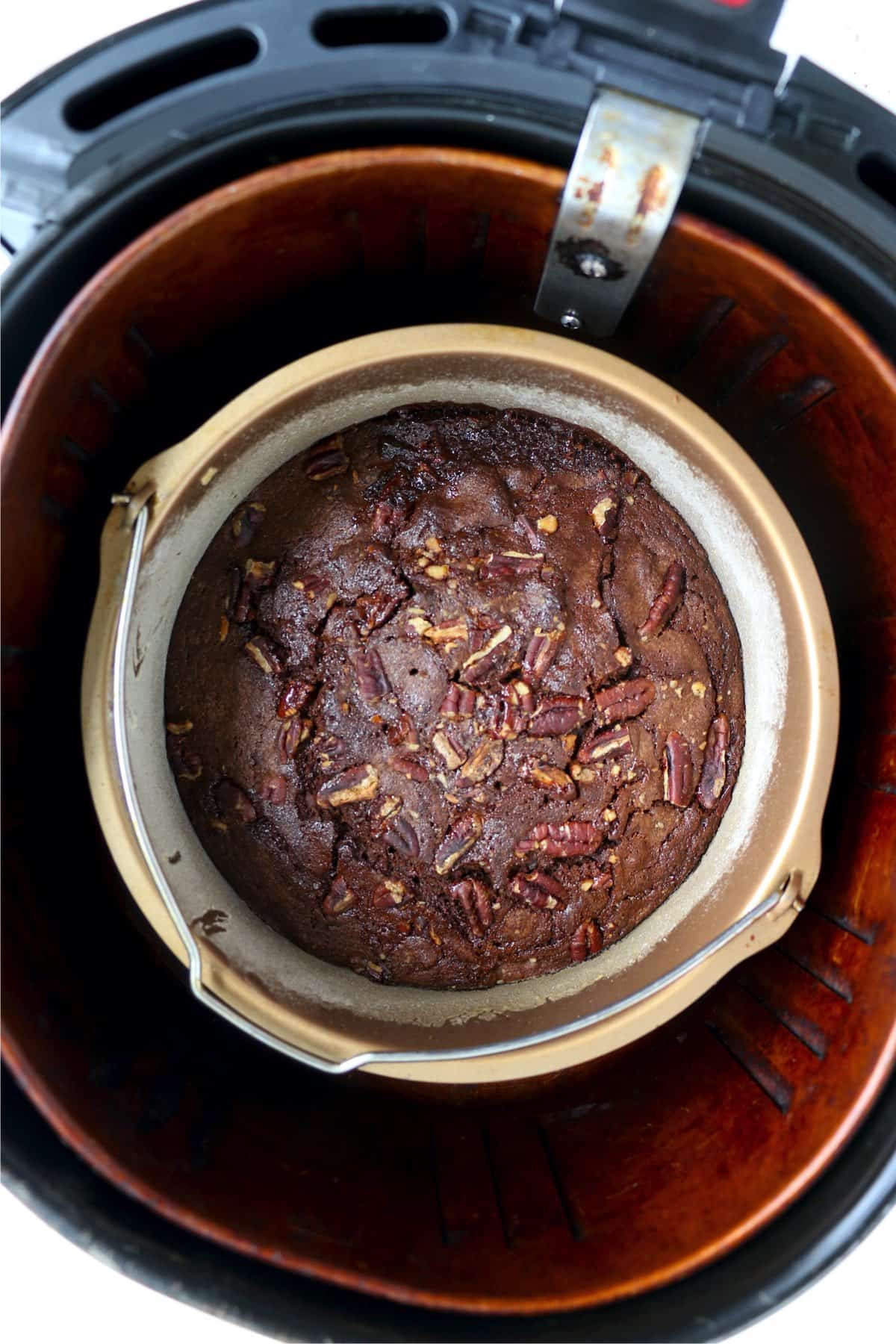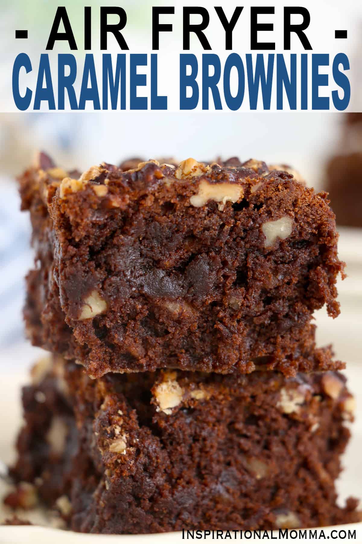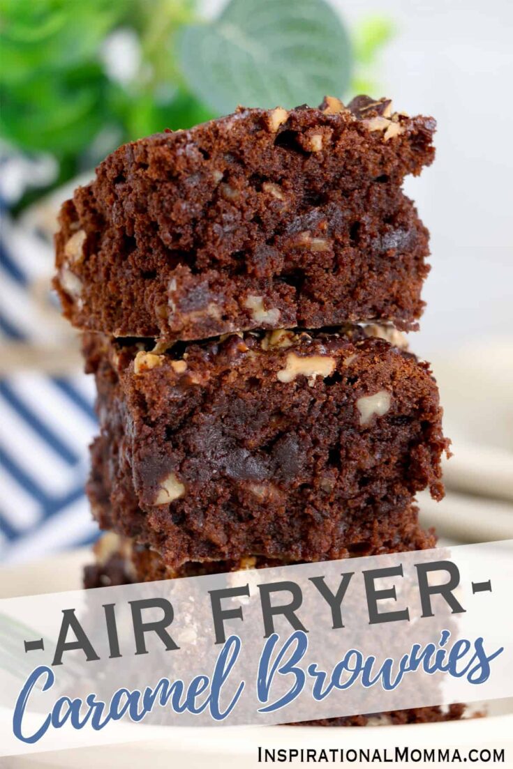 These air fryer caramel brownies are super fudgy and loaded with caramel and chopped pecans. It's all the classic flavor we love in brownies!