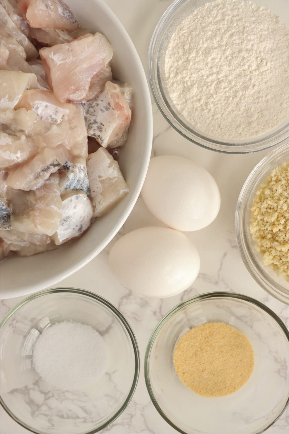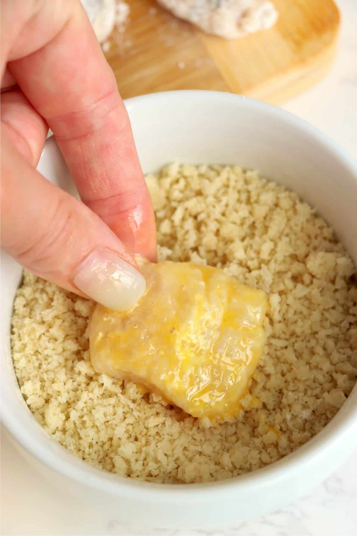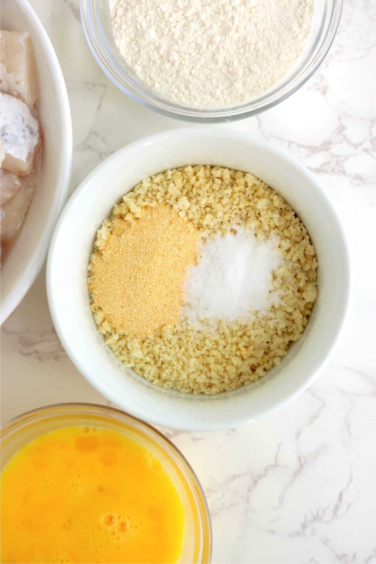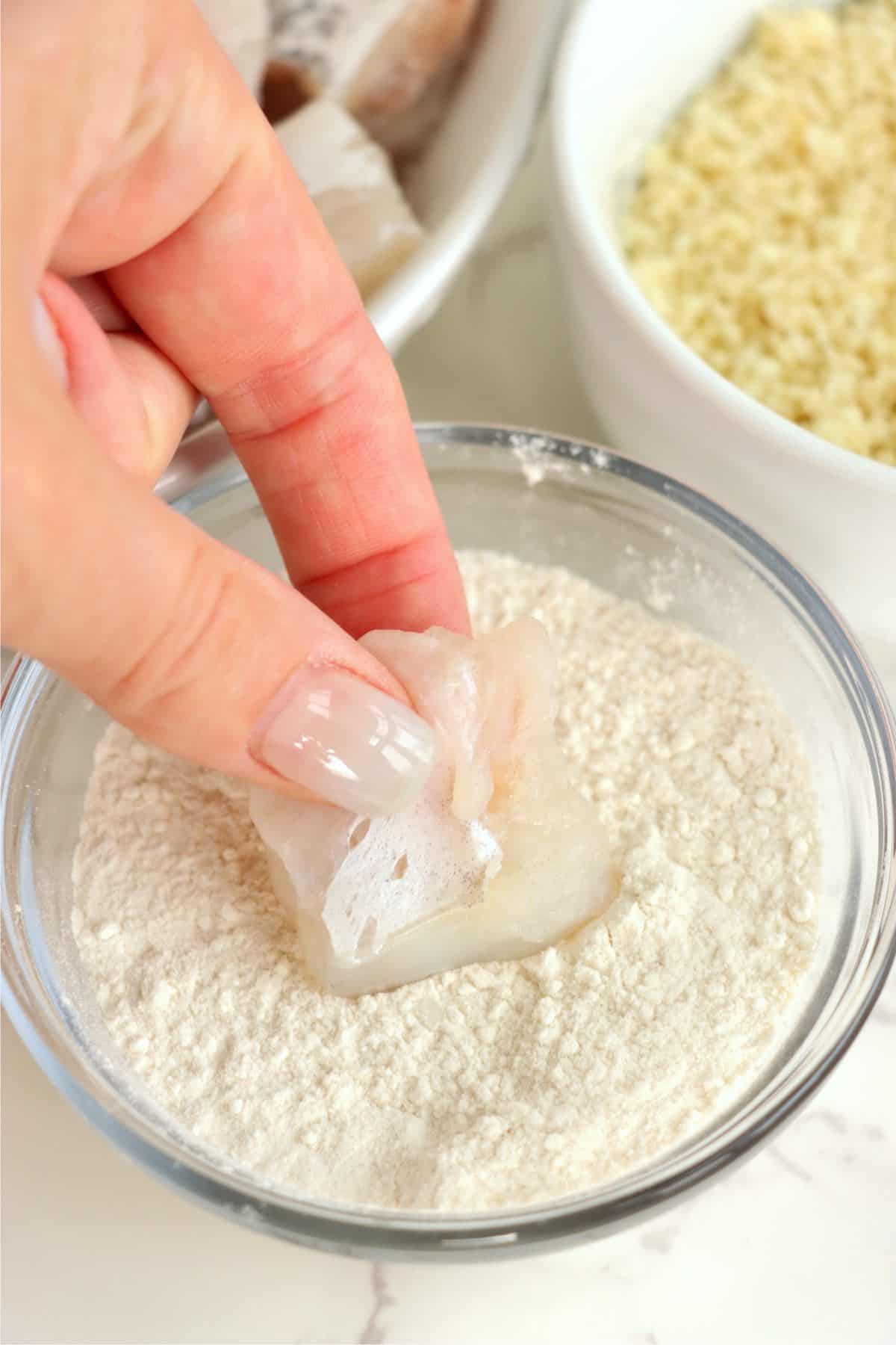 - Coat each piece of catfish in flour (shaking off the excess), dredge them in egg, and finally coat them in the panko mixture.