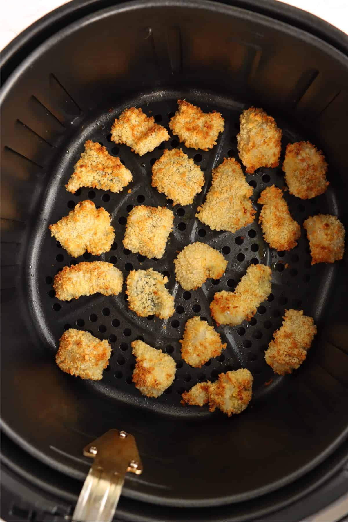 - Place breaded pieces into your greased air fryer basket in a single layer. Depending on the size of your air fryer, you may have to cook in batches.