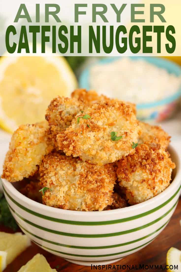 Air fryer catfish nuggets have the same crispy breading we love in regular fried catfish but with no grease and NO messy cleanup!