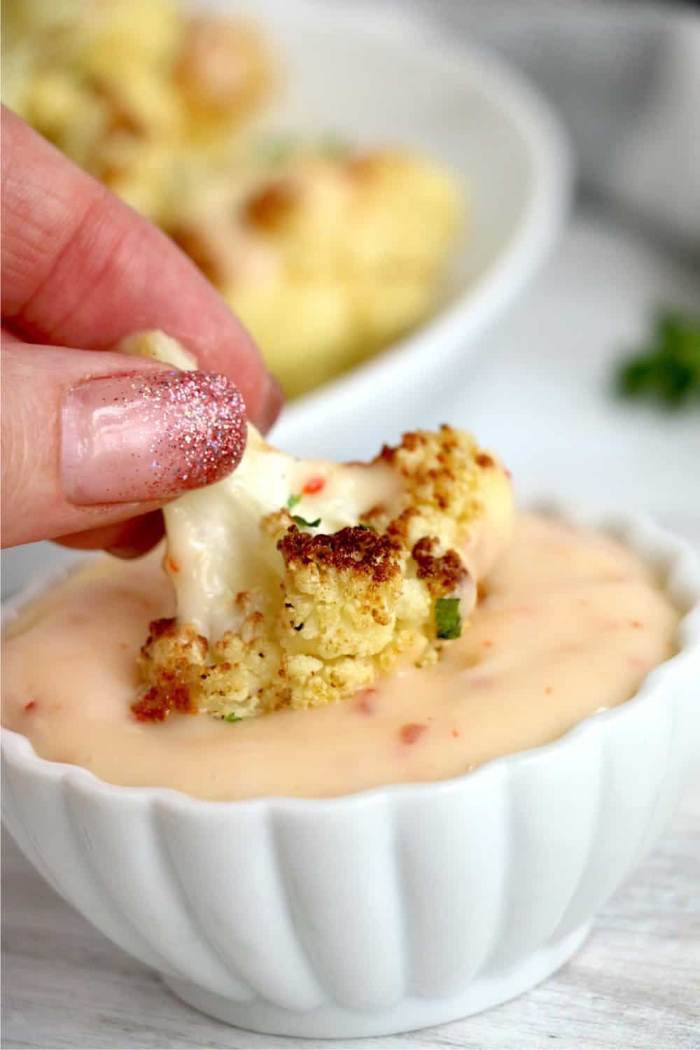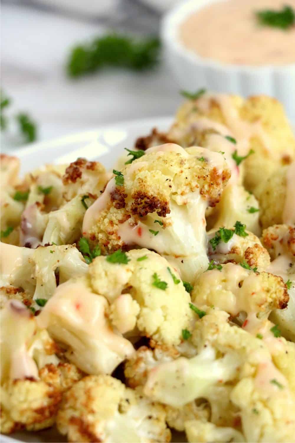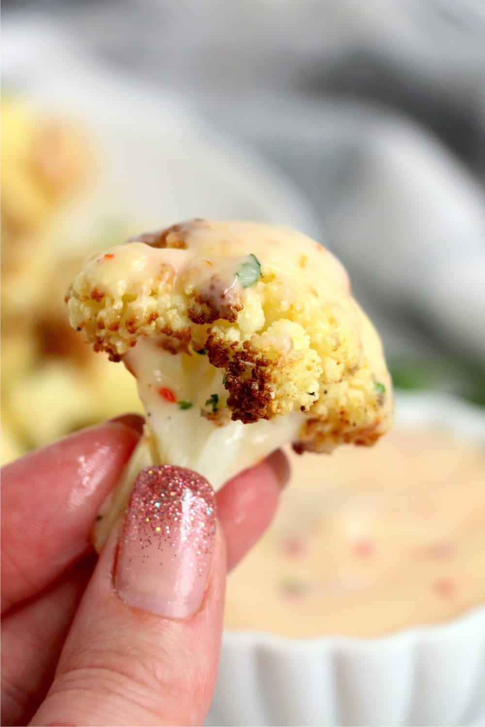 Can I tell you a secret? This Air Fryer Cauliflower recipe doesn't taste like strong cauliflower. If you've never tried eating cauliflower I do not want you to be afraid of trying this tasty recipe. The seasonings on this air fryer roasted cauliflower really brings out such an amazing flavor. Then, when you dip your crispy cauliflower into the bang bang sauce, your mind will be blown by how flavorful and delicious this air fryer cauliflower turns out.