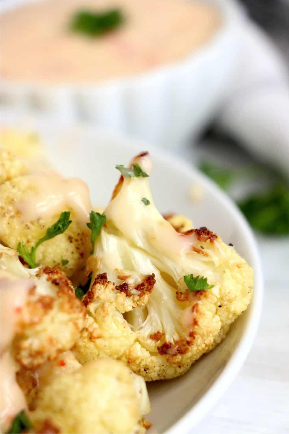 5. Transfer cooked cauliflower from the air fryer to a serving bowl.