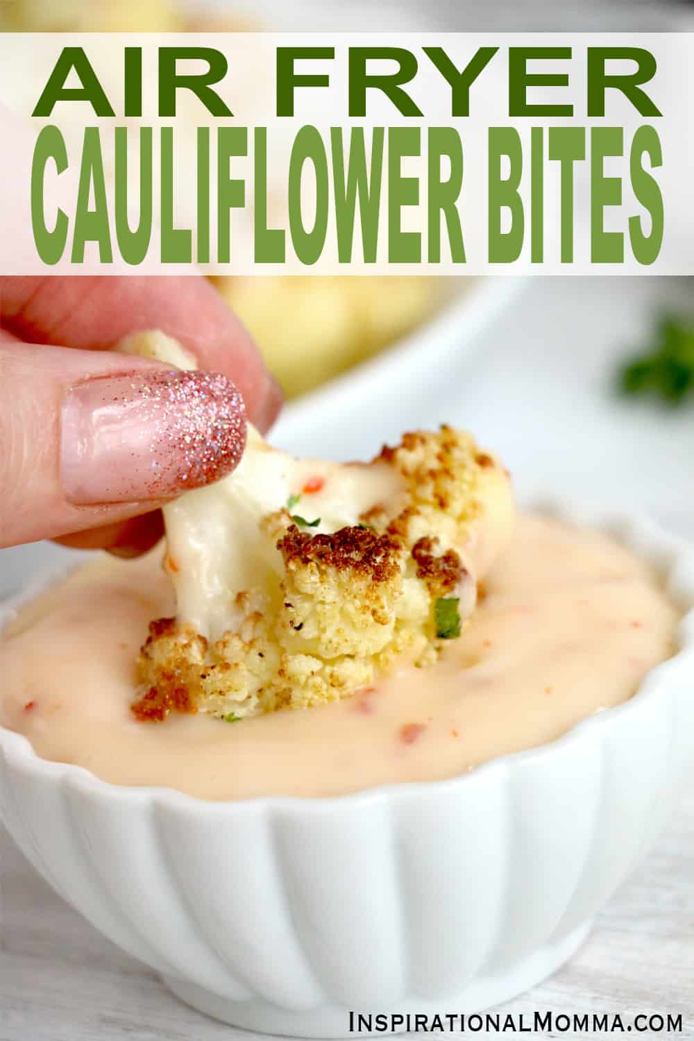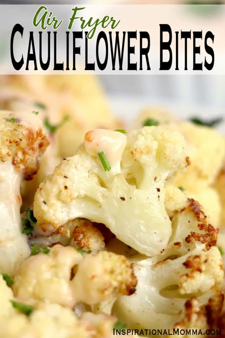 Air Fryer Cauliflower Bites are a simple and low carb recipe that pairs perfectly with any meal or as a tasty snack!  #inspirationalmomma ##airfryercauliflowerbites #airfryercauliflower #airfryer #airfryerrecipes #airfryerappetizers #cauliflowerbites #cauliflower