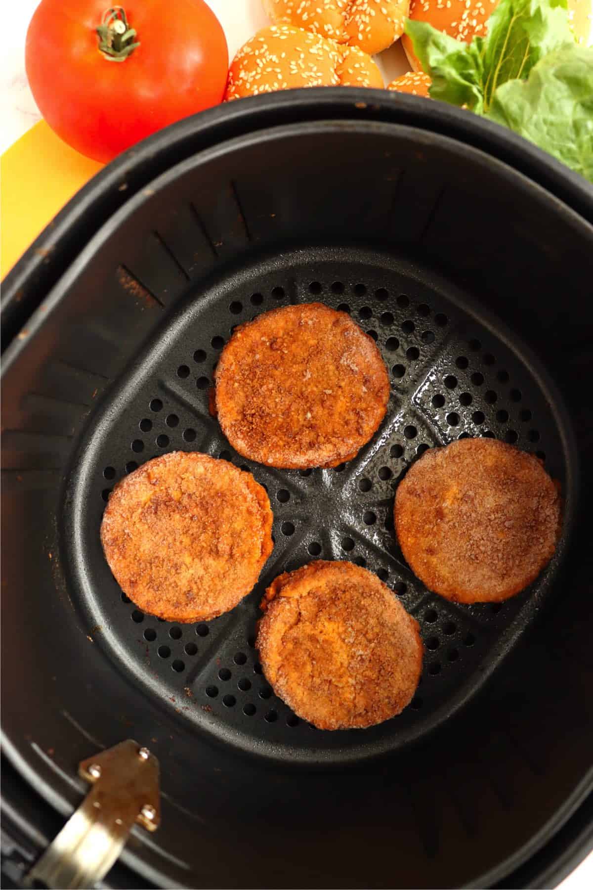 - Remove from air fryer basket and serve with a bun and your preferred toppings.