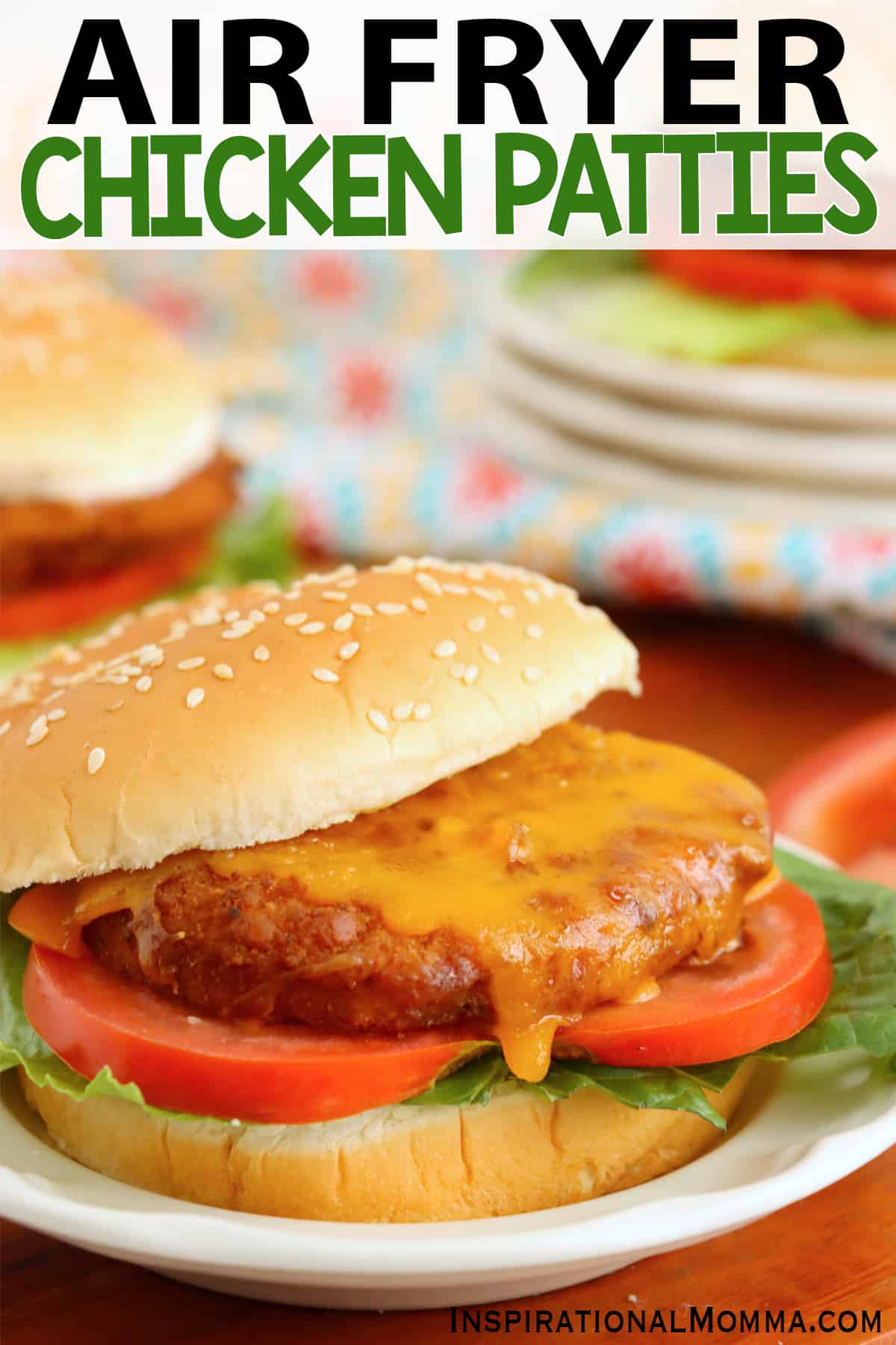 These easy air fryer chicken patties are made with frozen chicken patties. The air fryer cooks them to crispy perfection every time!