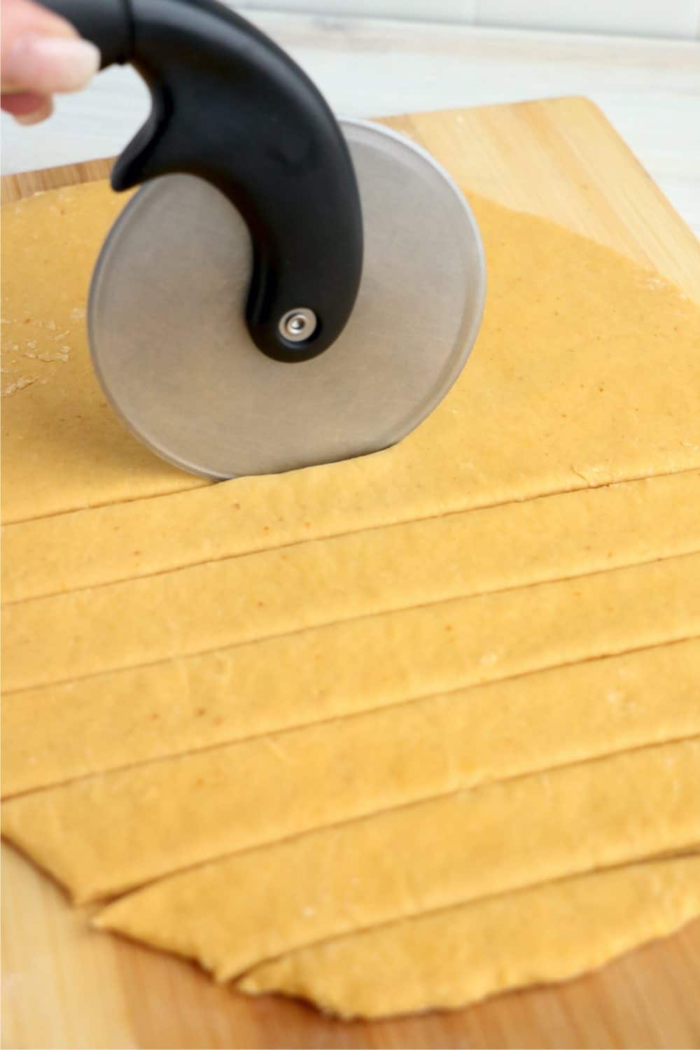 Roll dough out on a floured surface until it is about 1/4-inch thick.