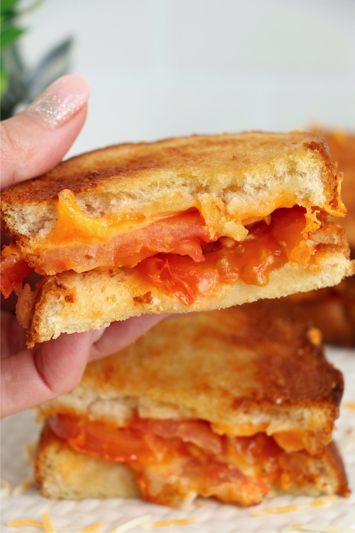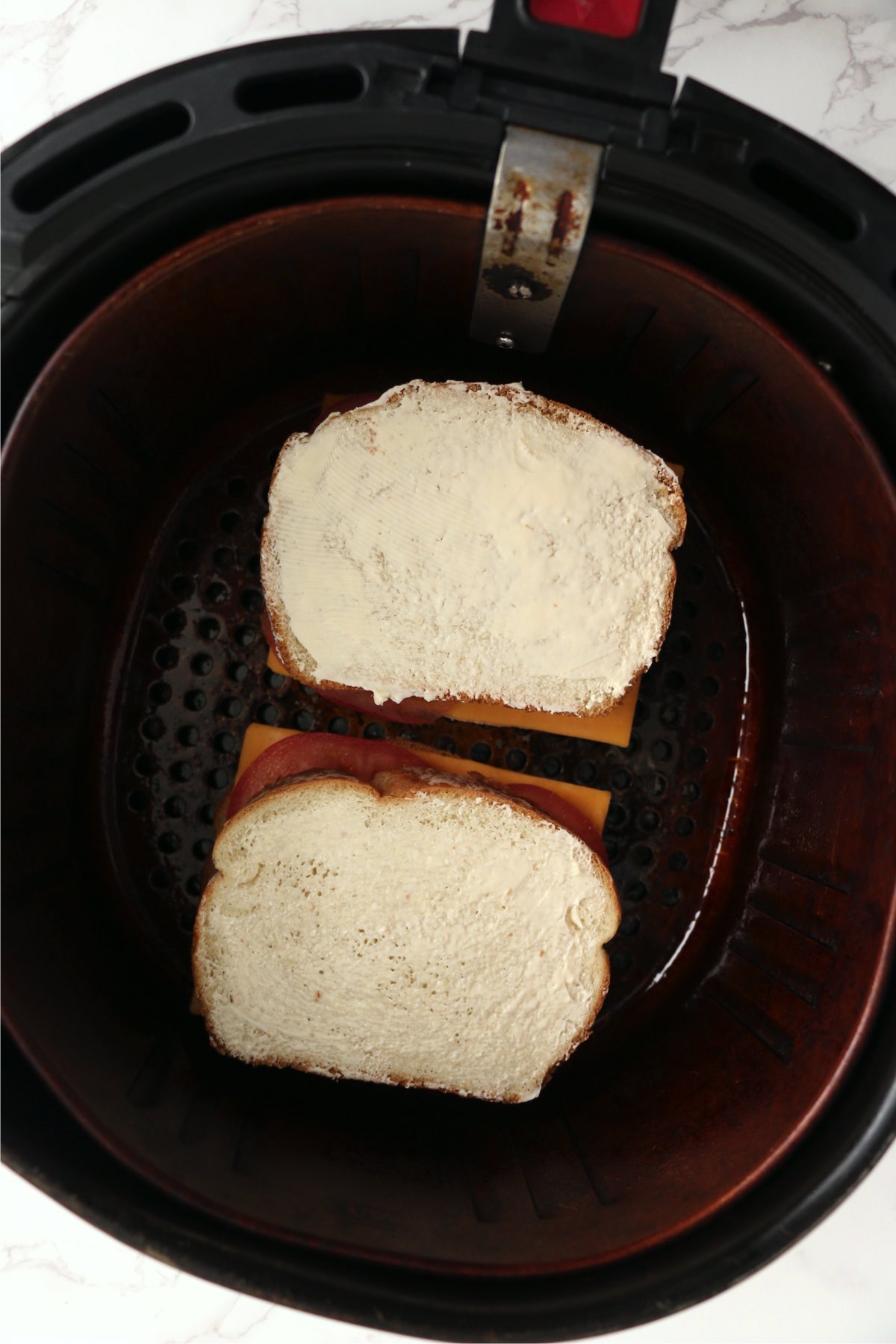 This air fryer grilled cheese and tomato combines perfectly toasted bread, gooey cheese, and everyone's favorite garden fruit!