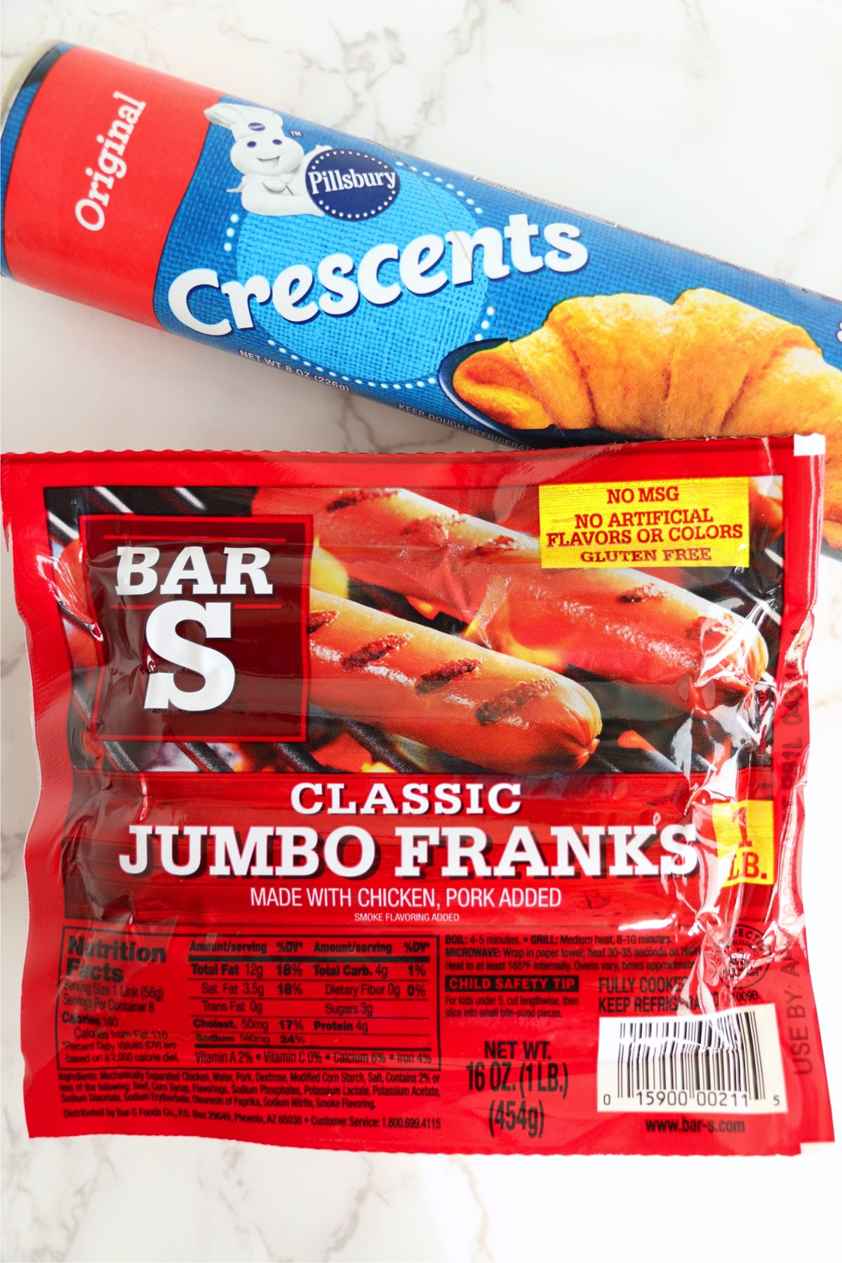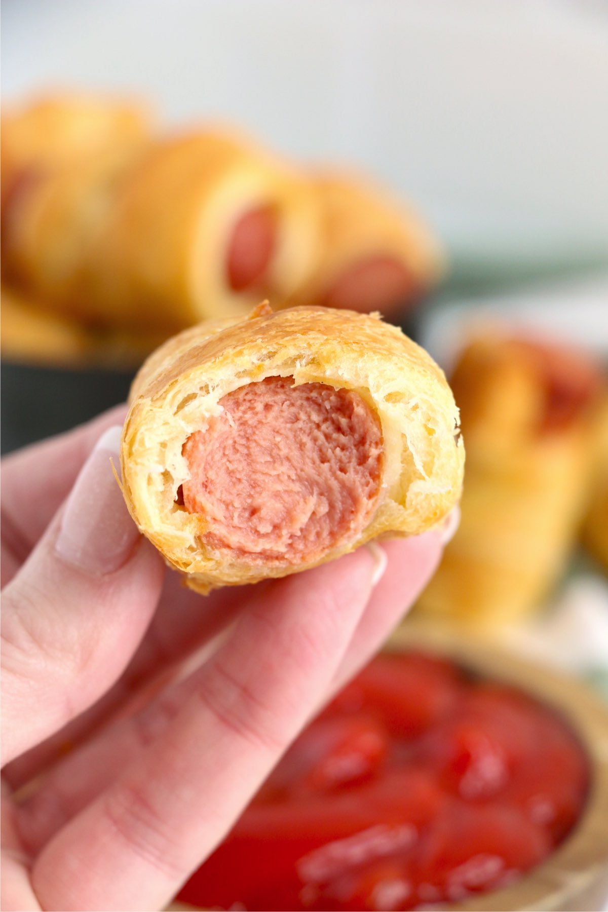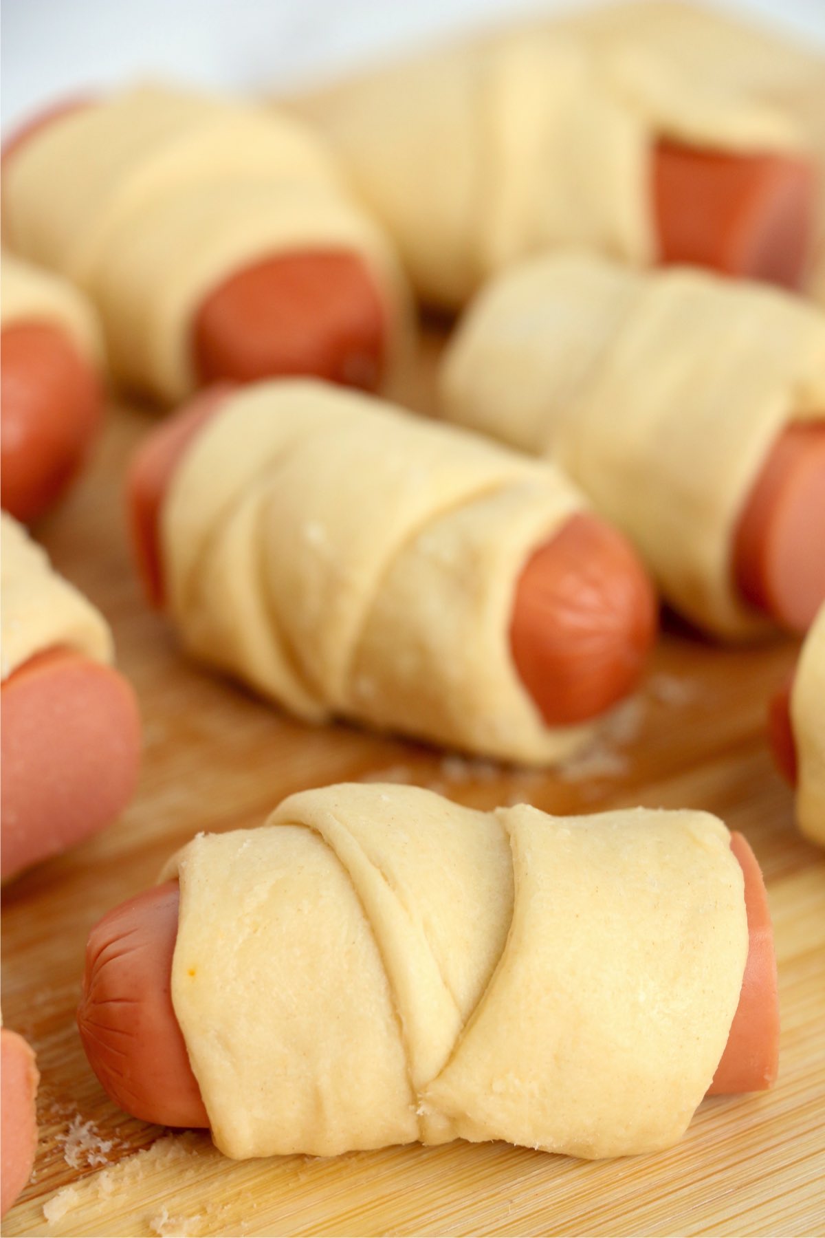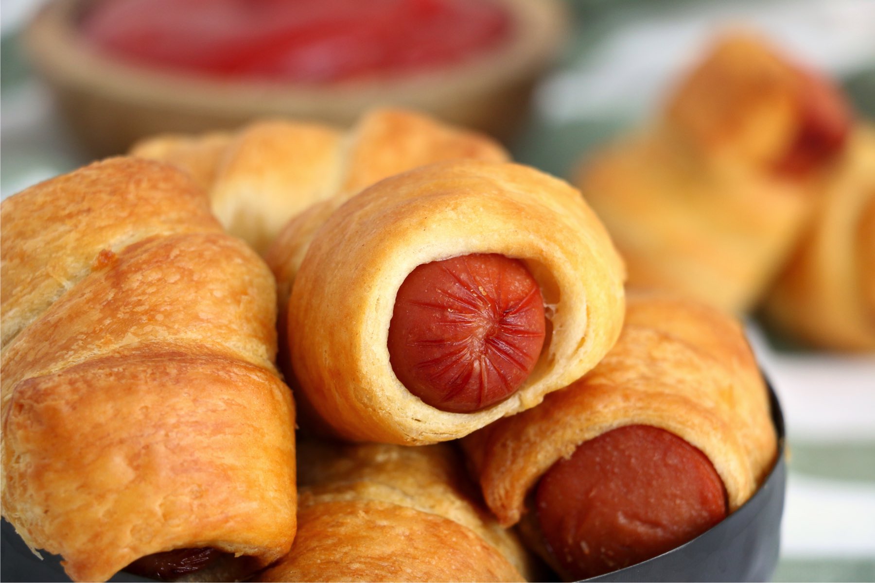 Delicious hot dogs are wrapped in crescent dough and baked up crispy and golden. They're a great snack or party food for any occasion.