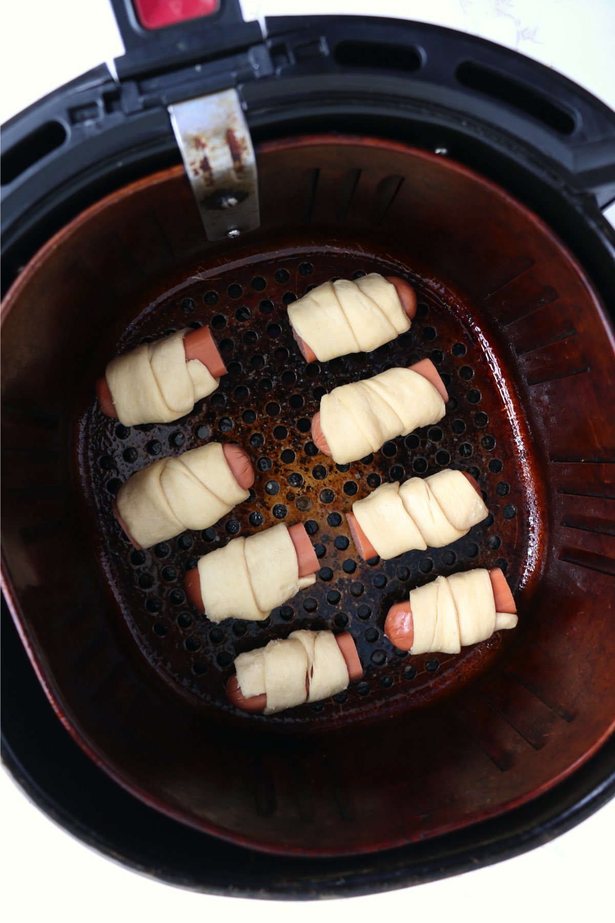 Step 6: Place pigs in a blanket in a greased air fryer basket so they are about an inch apart. Depending on the size of your air fryer, you may have to cook in a couple of batches.