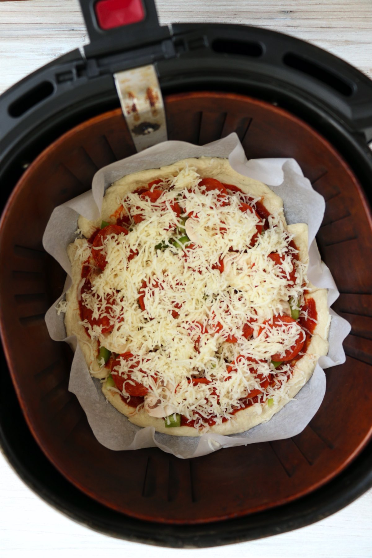 I love making homemade pizza, especially using this recipe. Using a storebought dough means I don't have to proof, mix, or knead. I can just put on the toppings and pop it in the air fryer!