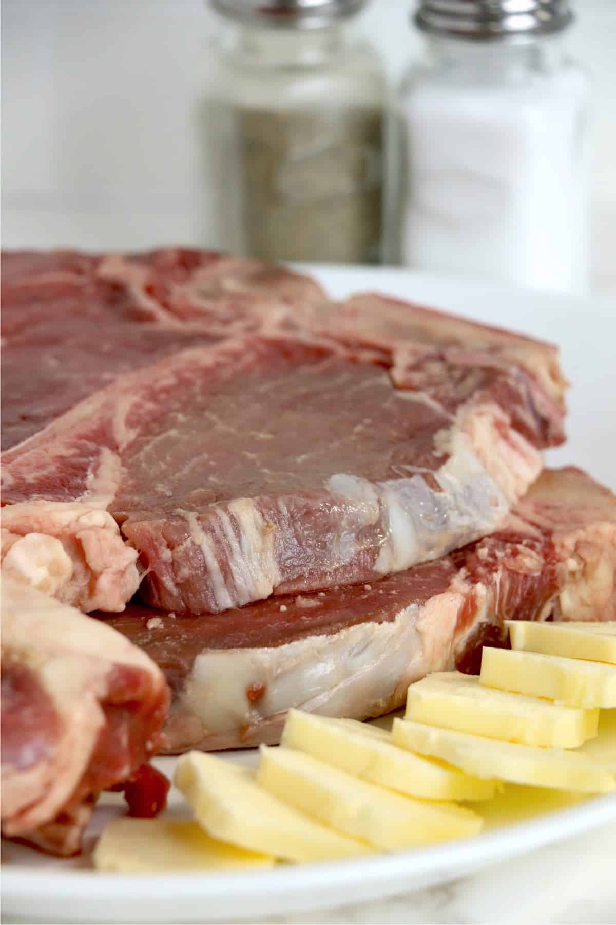 - Slice 2 tbsp of butter and place it on top of the steak.