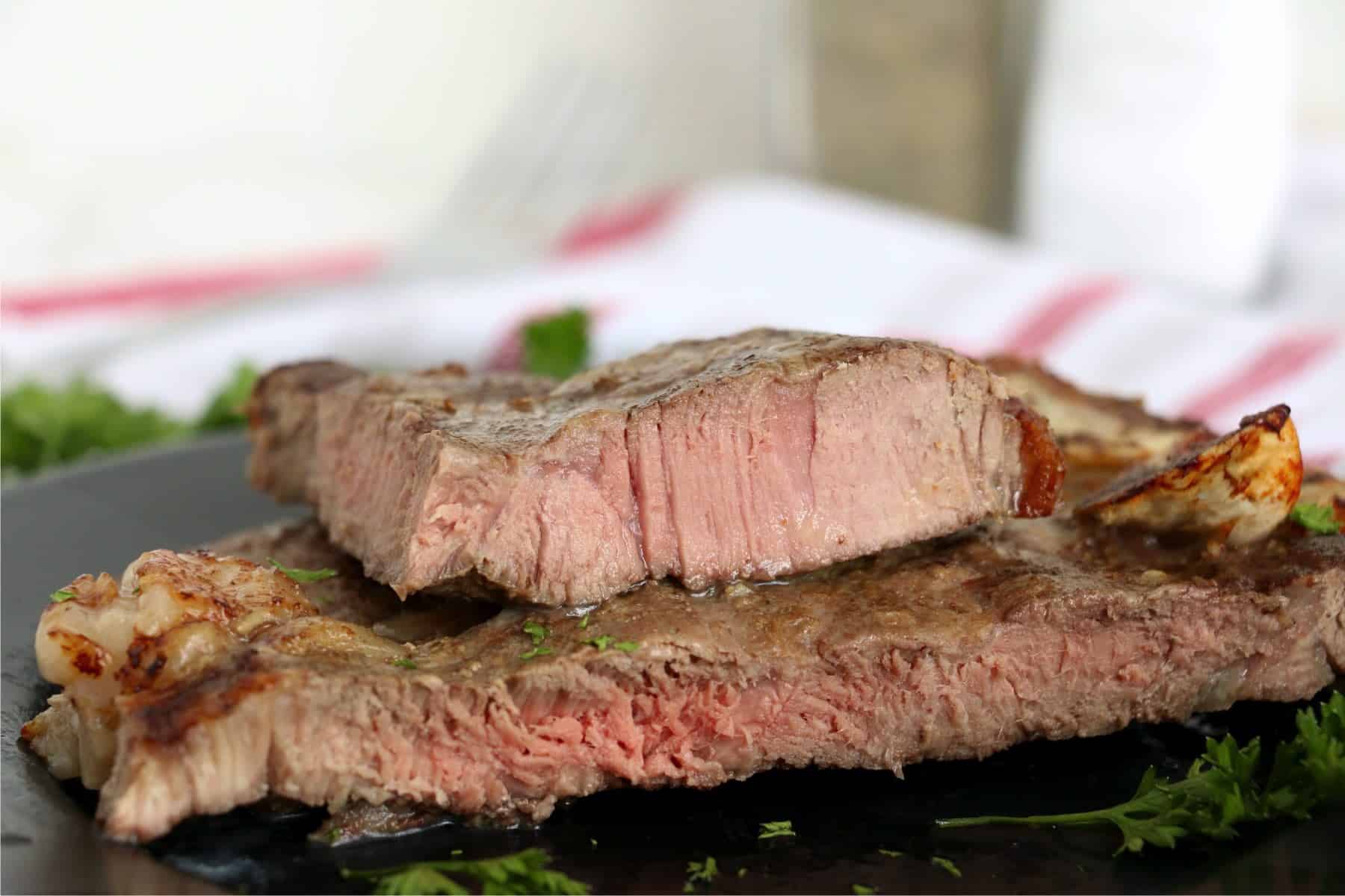 Air fryer porterhouse steak is an easy main dish that's full of flavor and always perfectly cooked. This steak is gorgeous on the outside and so tender and juicy on the inside.