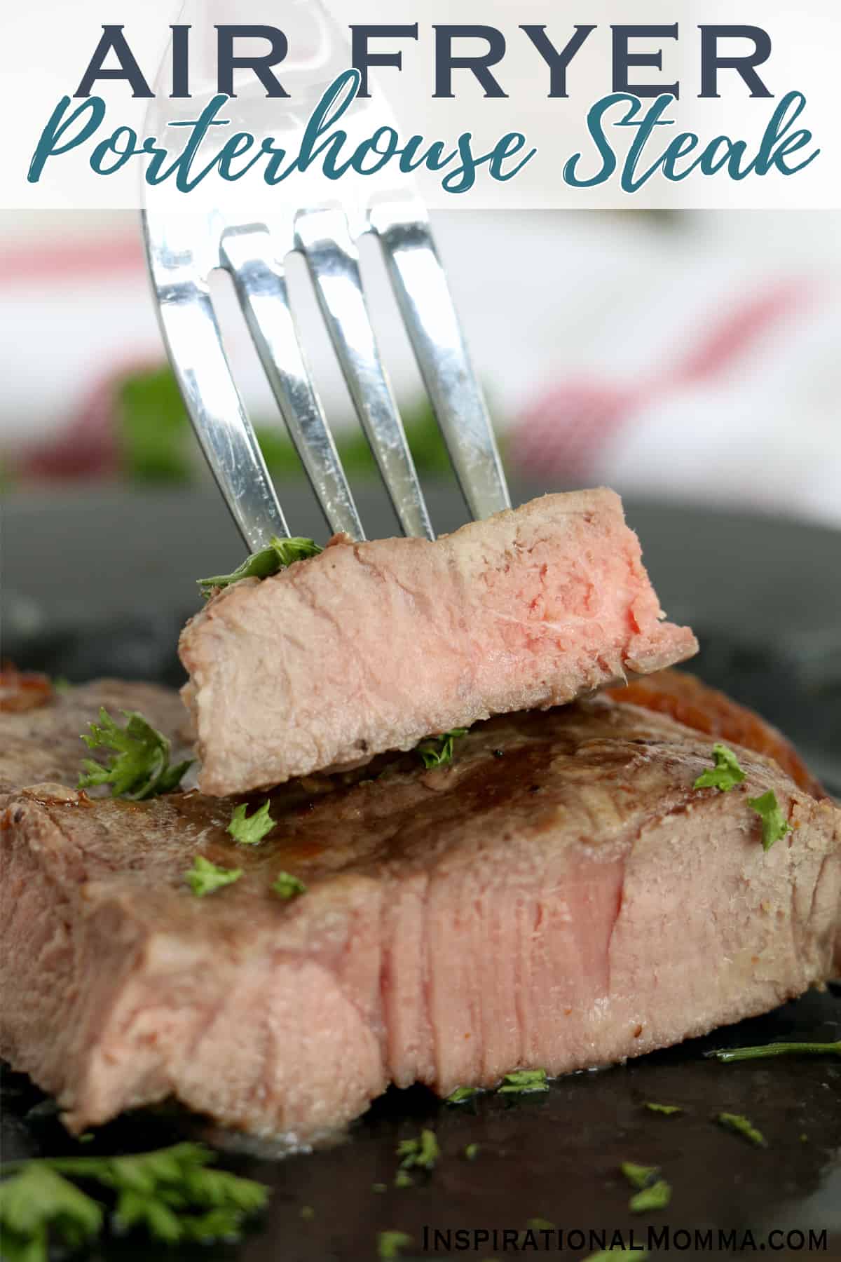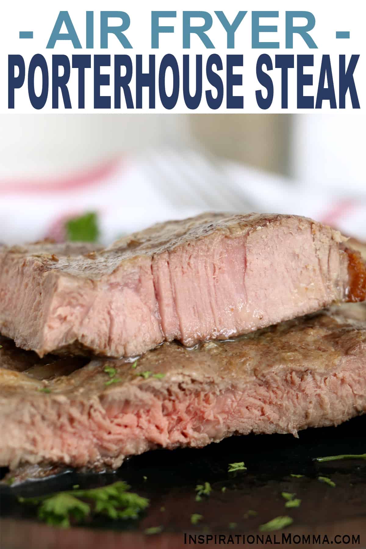 This air fryer porterhouse steak combines the best of both pan-searing and oven baking steak into one delicious final product. #inspirationalmomma #airfryerporterhousesteak #airfryersteak #airfryerbeef #airfryerrecipes #airfryer #porterhousesteak