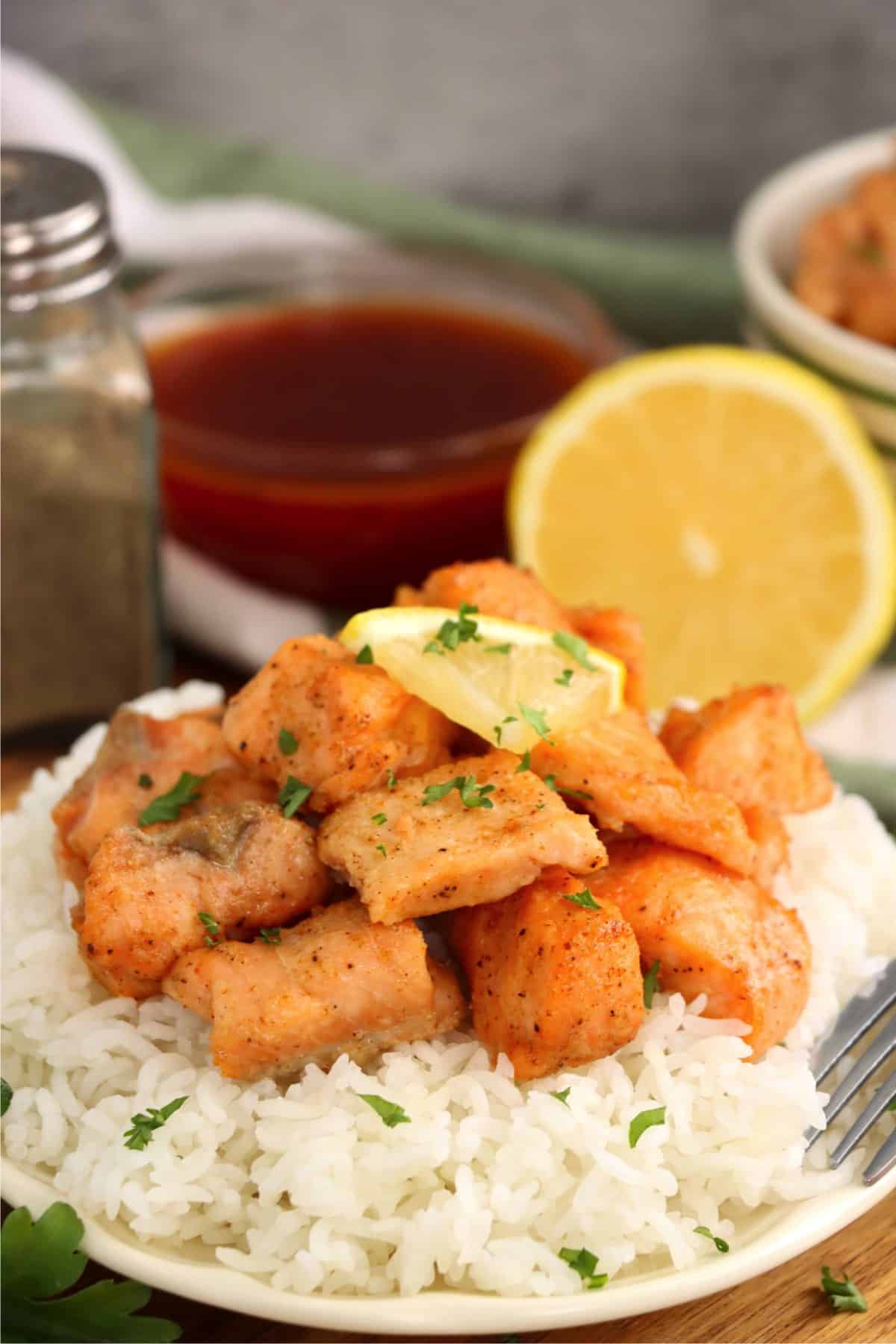 - Try using lemon pepper seasoning for lemon pepper salmon bites.