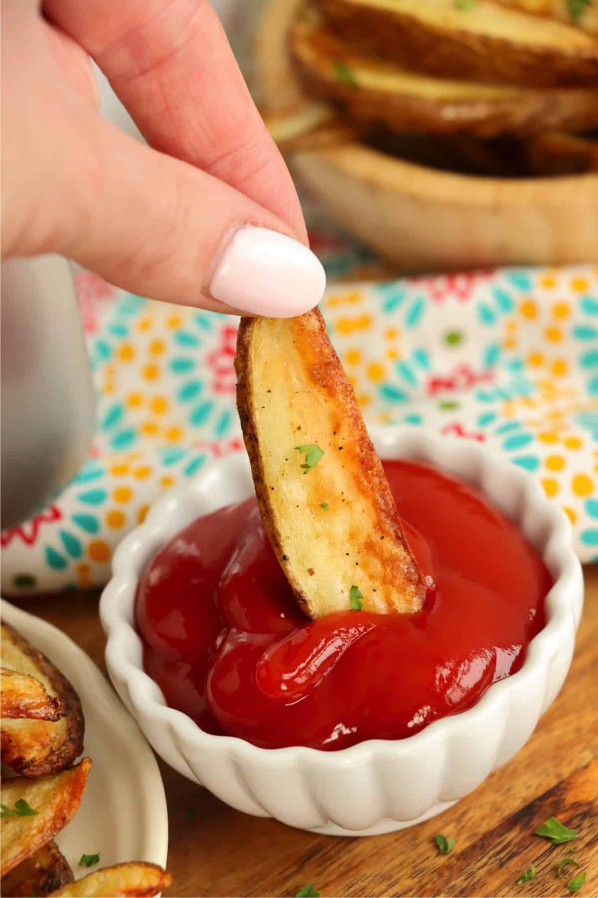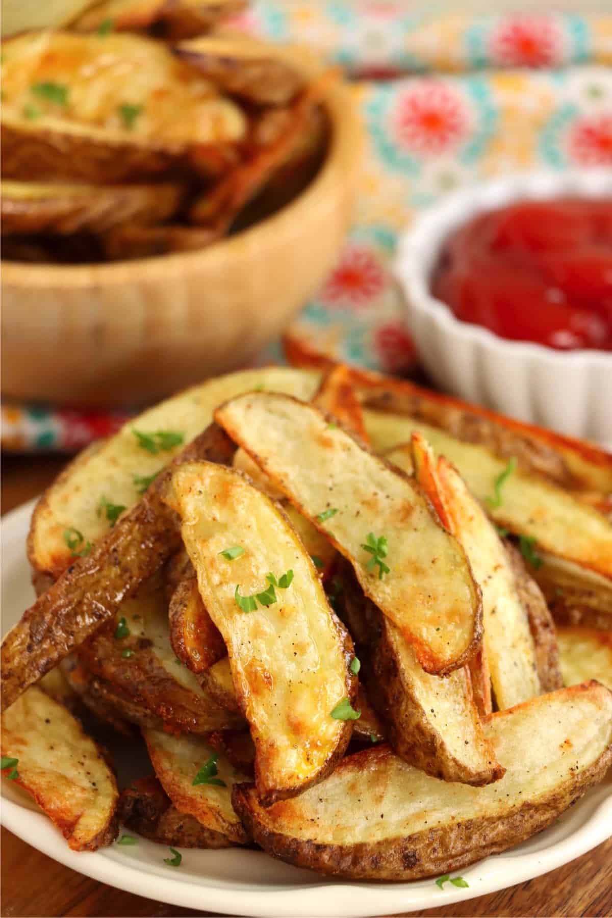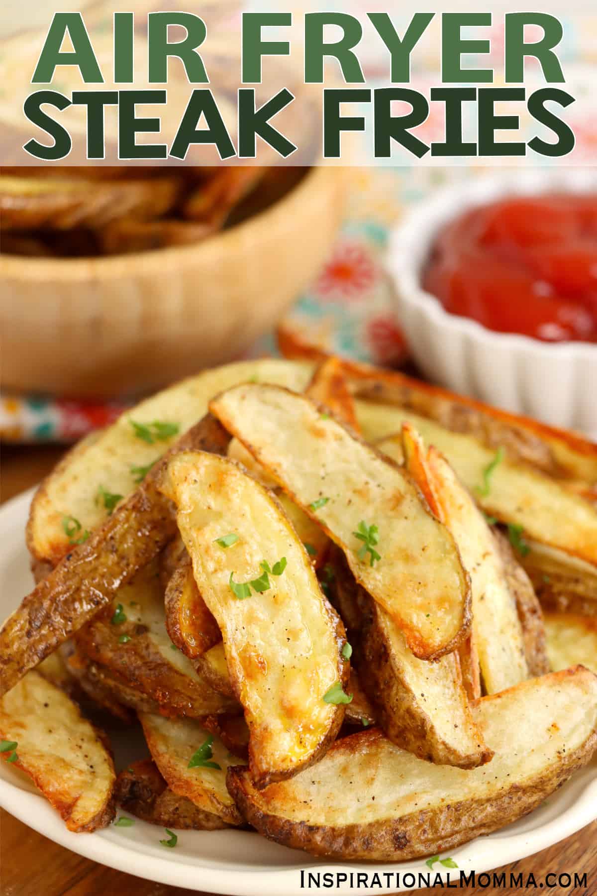 Steak fries are the ultimate French fry variation if you ask me. I love their crispy exterior and soft interior, and when you serve them with simple ketchup, you have a delicious side for almost anything. It's a potato side dish that everyone loves. This version is air-fried, so it always cooks to perfection and there's no messy cleanup!