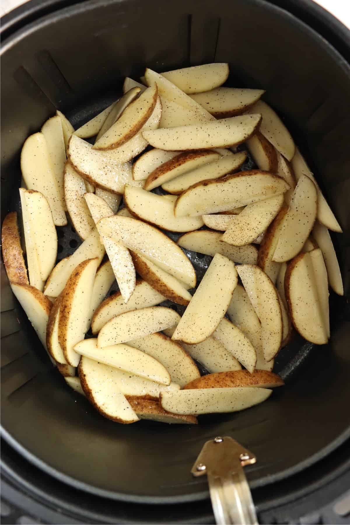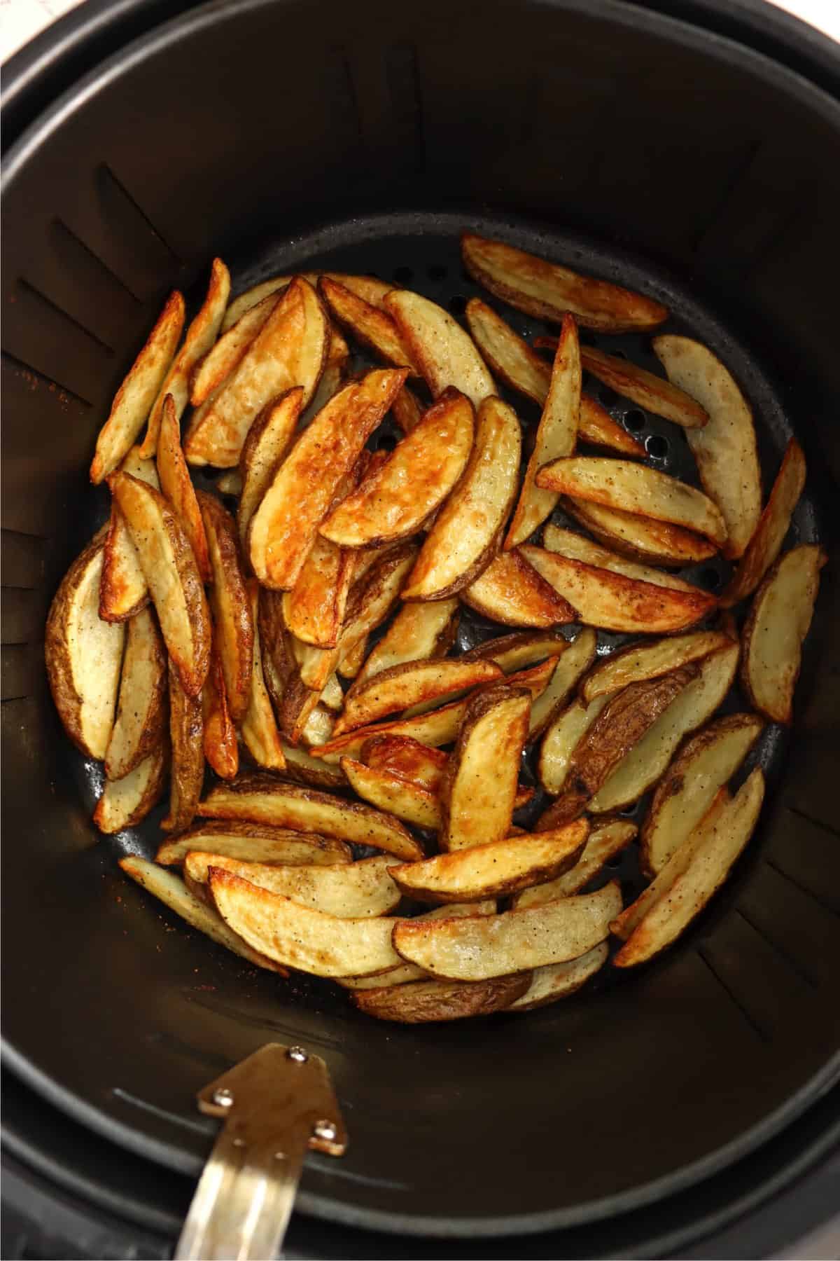 If you pack too many potato wedges into your air fryer, the heat won't be able to circulate around them adequately. In addition, it's important to give your basket a good shake every couple of minutes to redistribute the fries and help them get crispy on all sides.