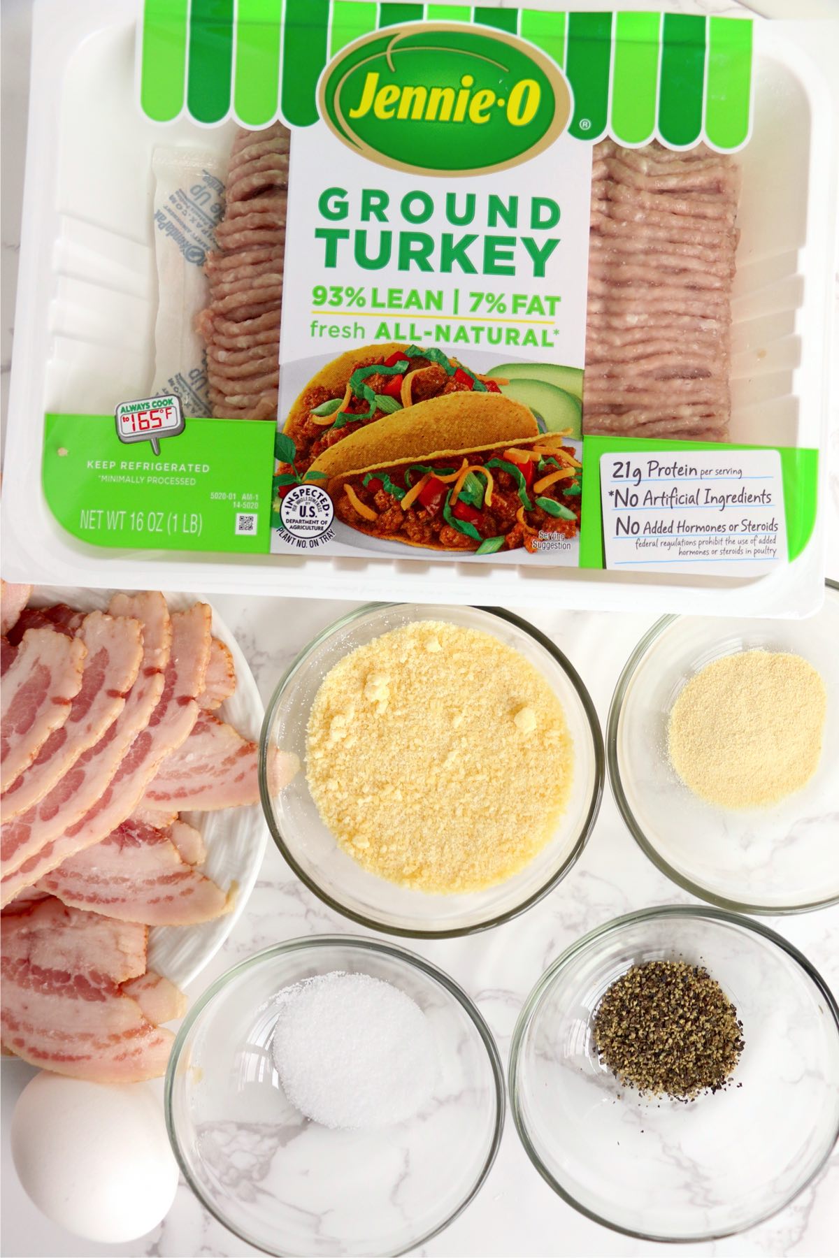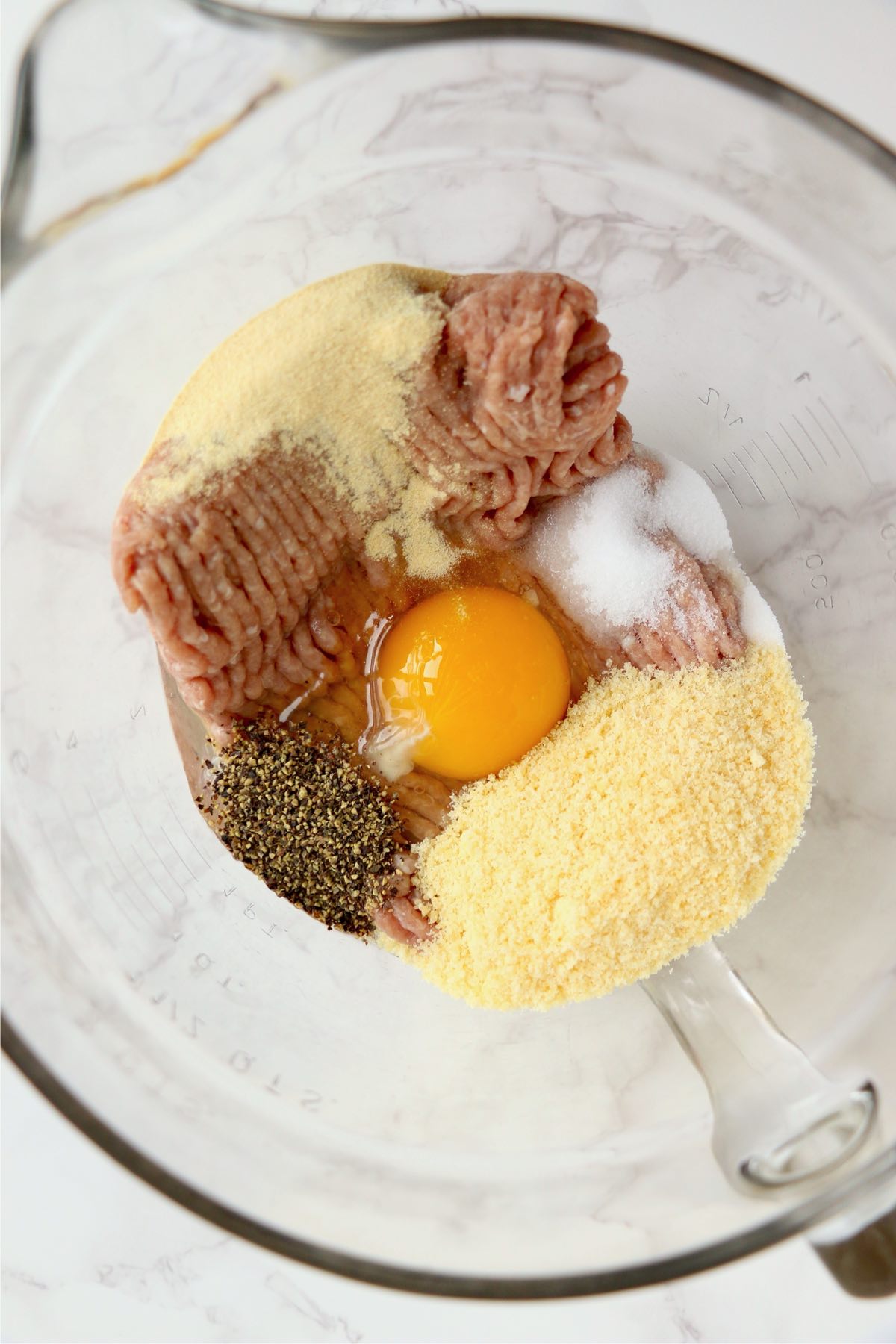- In a large mixing bowl, combine turkey, egg, parmesan cheese, garlic powder, salt, and pepper.