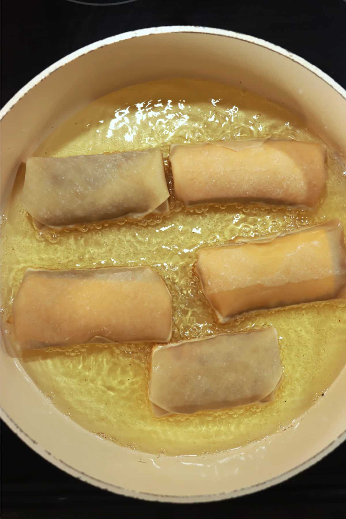 To get crispy egg rolls, be sure your oil is hot (about 3