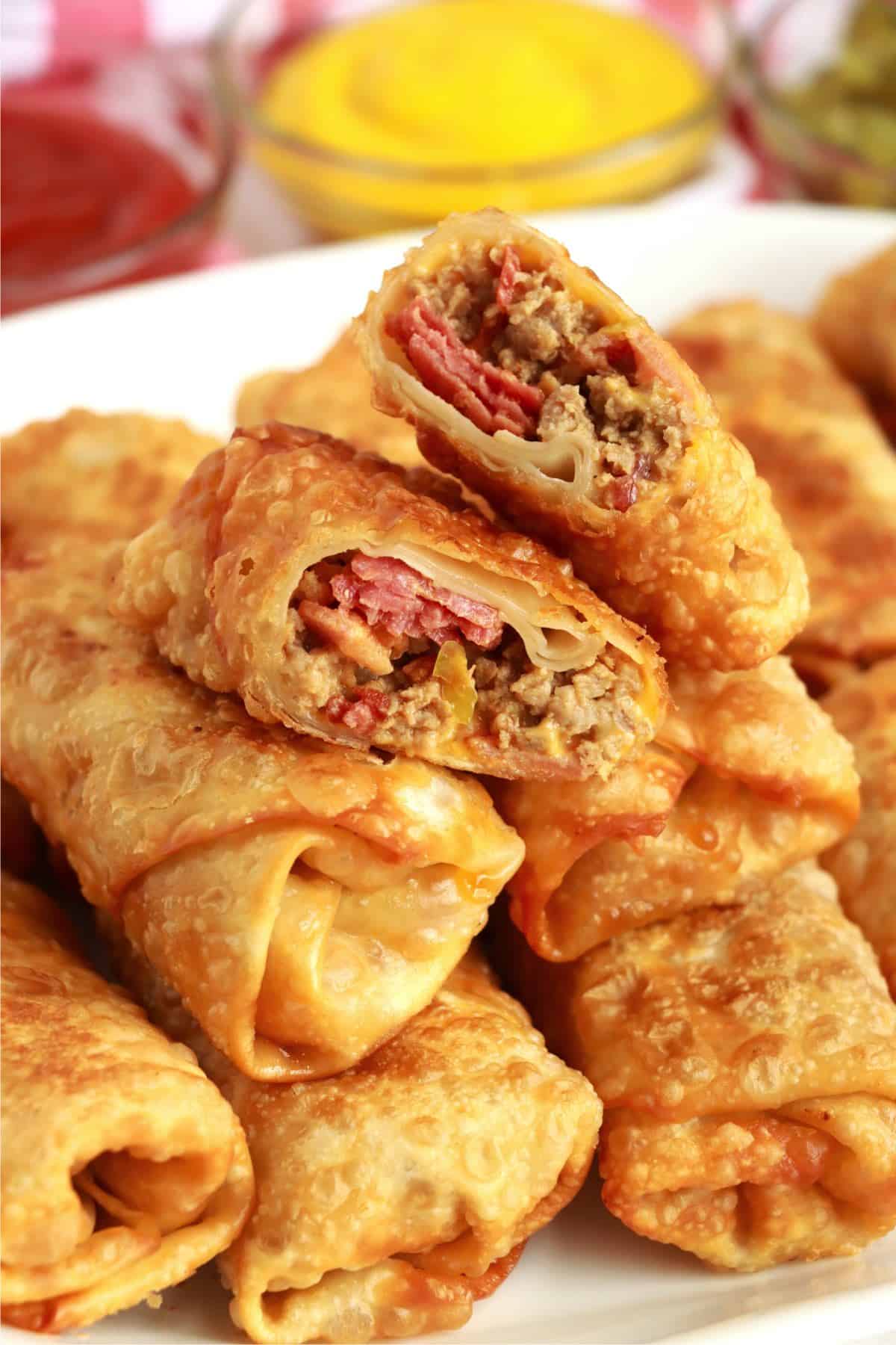 - It features crispy egg roll wrappers stuffed with all the cheeseburger goodness you love.