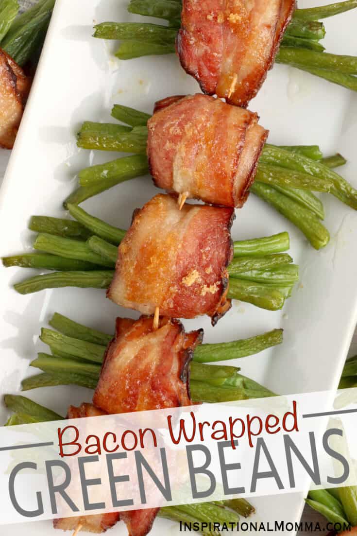 Bacon Wrapped Green Beans—fresh, crisp beans wrapped in flavorful bacon, topped with brown sugar, and baked to delicious perfection!