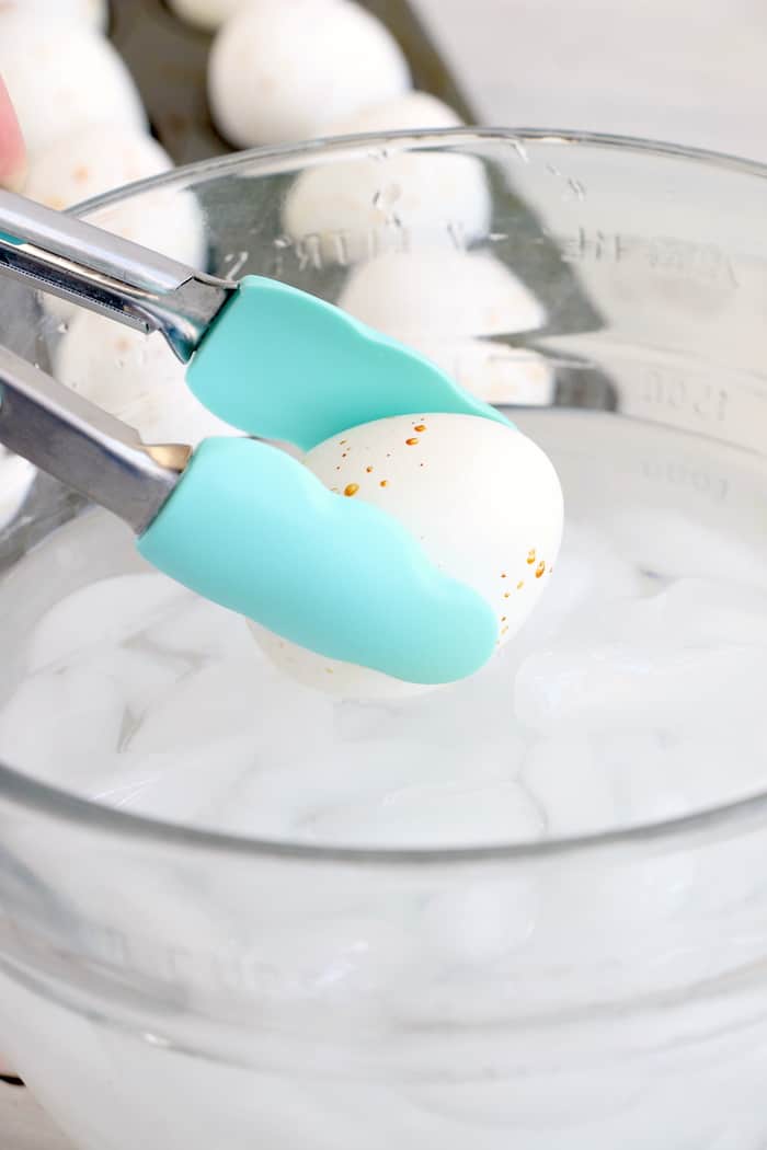 - Immediately put eggs in a bowl filled with water and ice for 10 minutes.