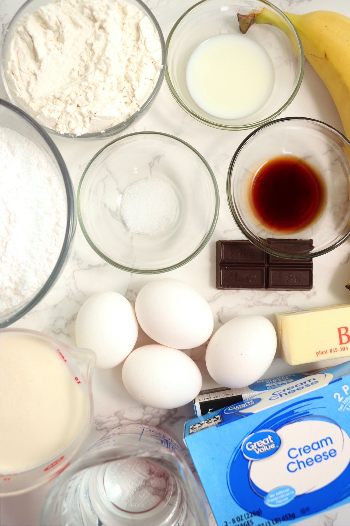This recipe only uses a few simple ingredients for cream puff, banana filling, and topping. The ones that really make this recipe pop are below, but you can find the complete ingredient list with amounts in the recipe card at the end of the post.