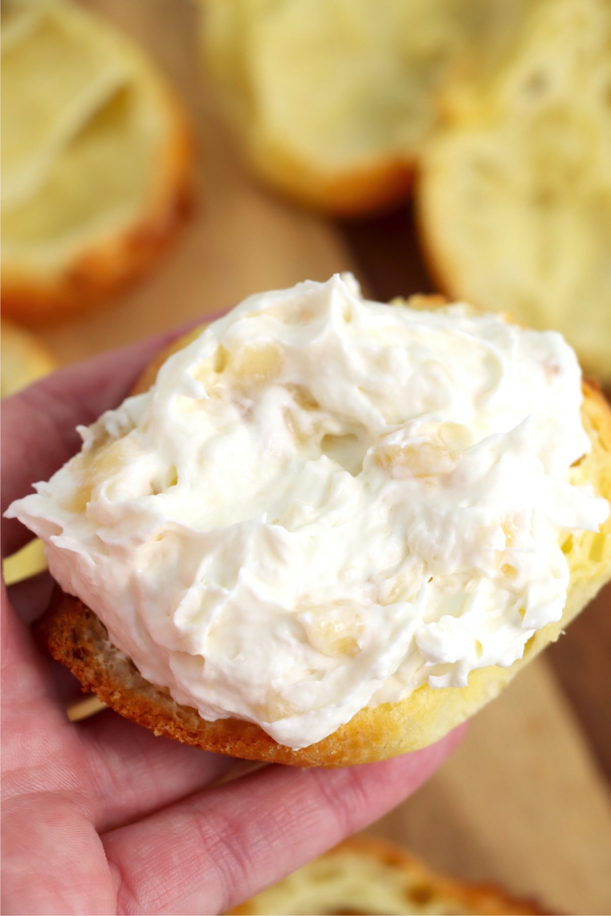 - Fold whipped cream and bananas into remaining cream cheese mixture. Chill.