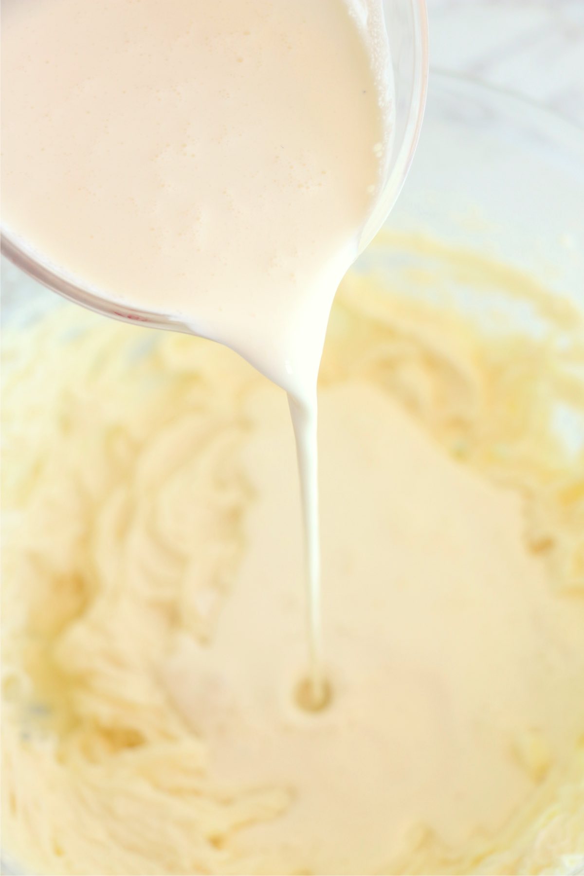 - Add heavy whipping cream and vanilla. Beat until stiff peaks form.