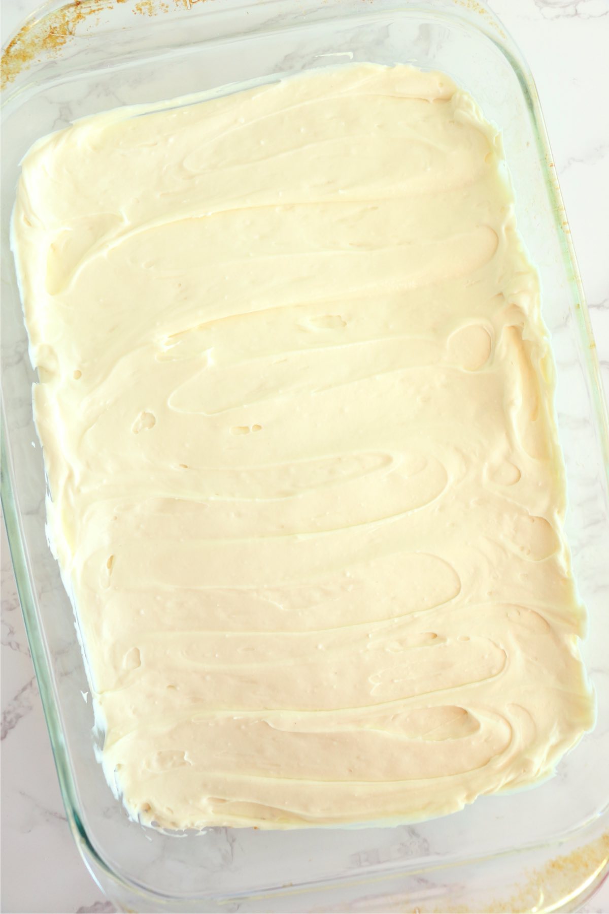 - Spread remaining cheesecake mixture over top of vanilla wafers.