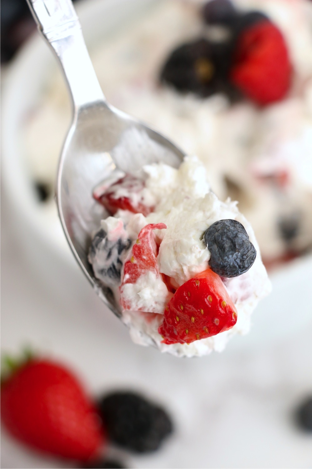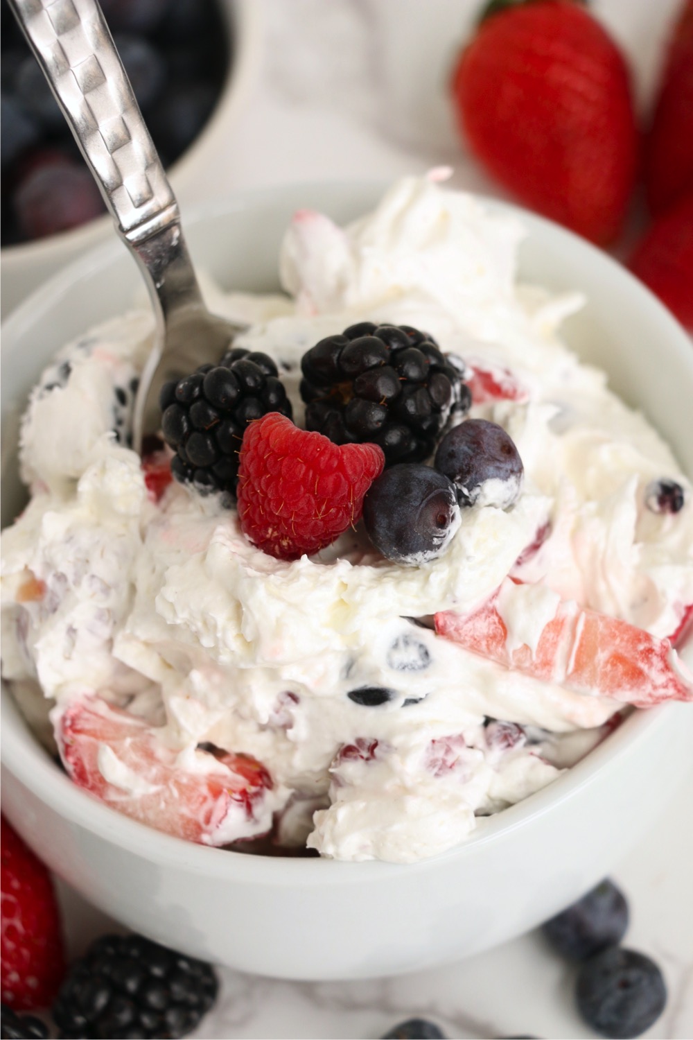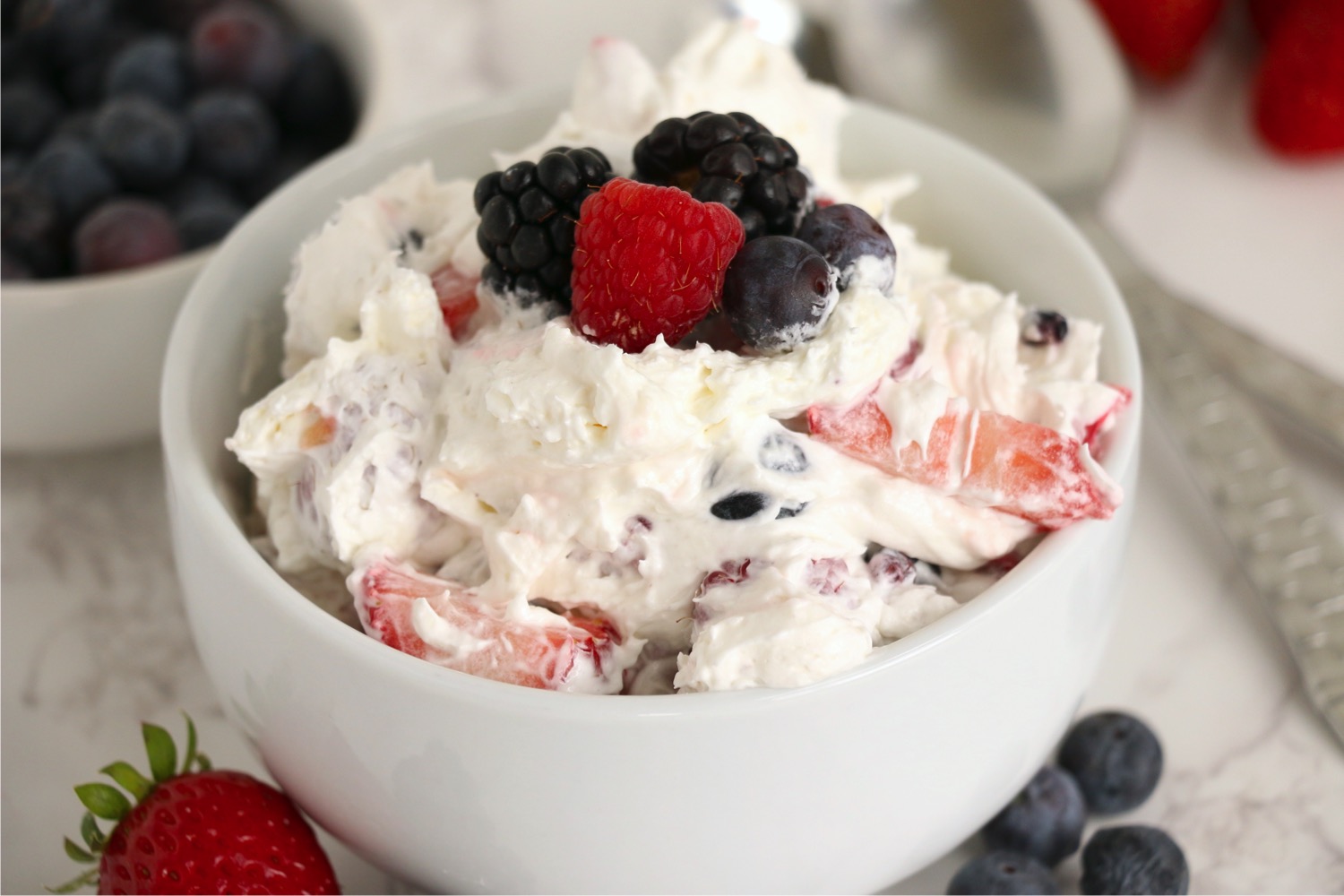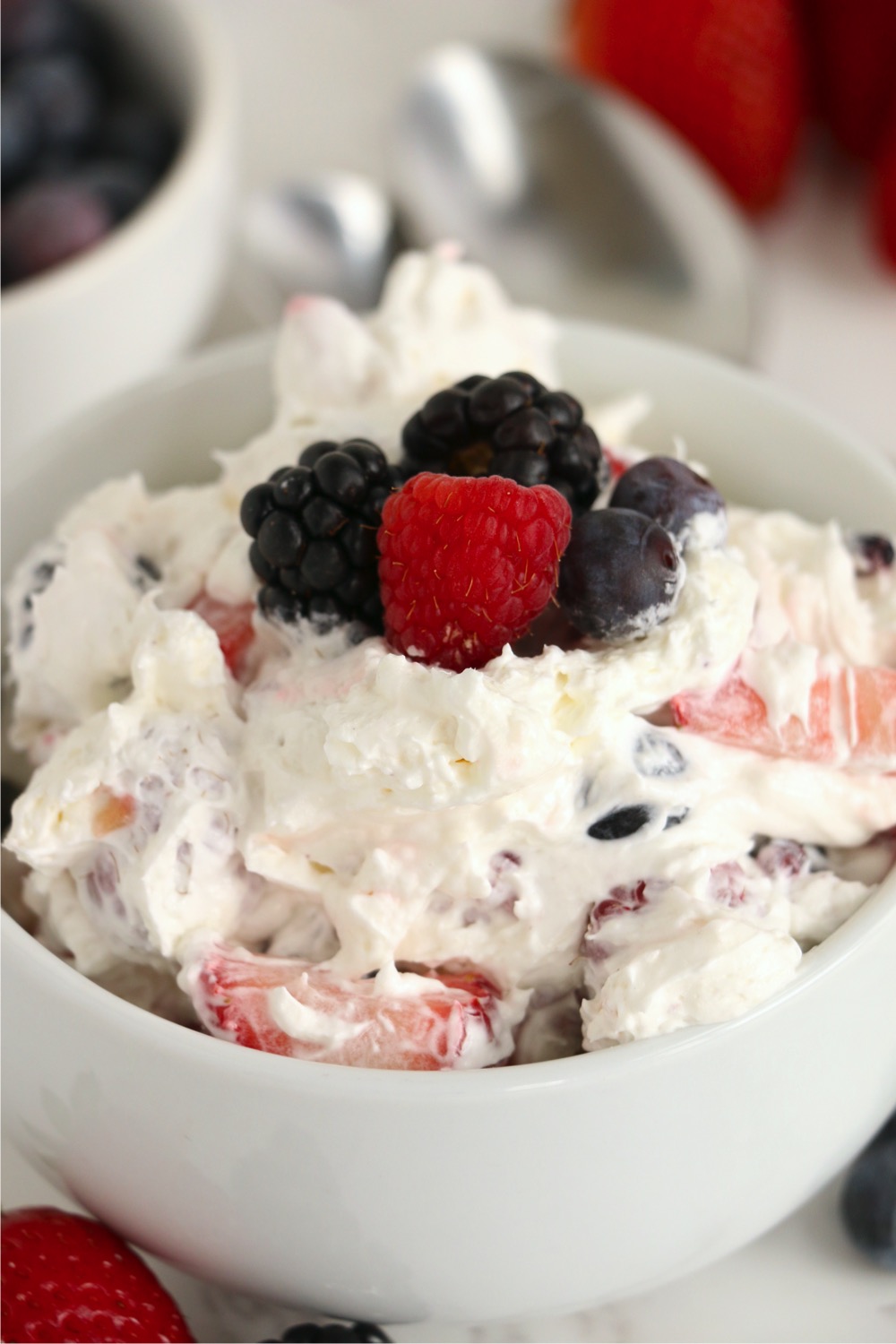 There's nothing better than the creamy, sweet and tangy fluff of this recipe mixed with the sweet mixed berries. It's always a huge hit with family and friends.