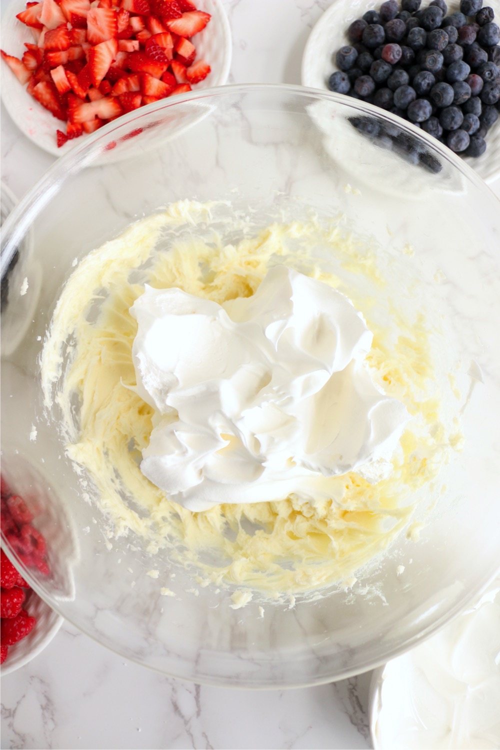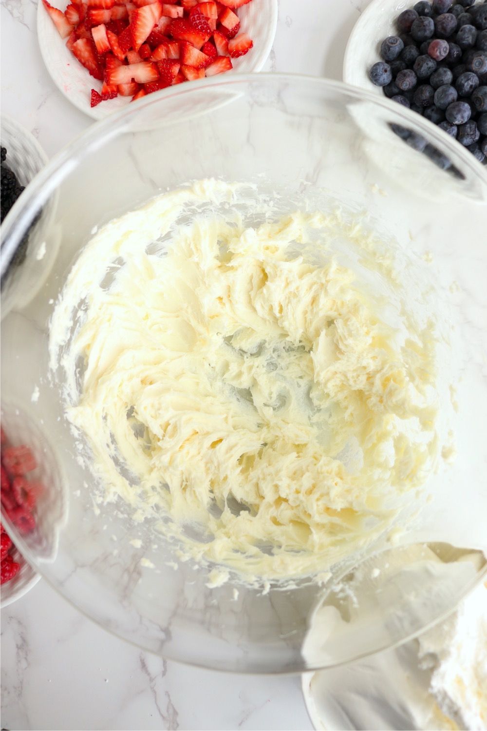 Step 1: In a large mixing bowl, beat cream cheese and sugar together.
