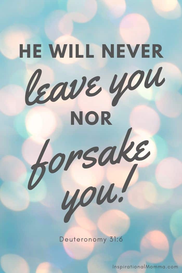 So, instead of dwelling on the w-word (why), we need to focus on the reassurance that God knows exactly why something is happening and He will be with us through the entire situation. Even when you feel lost, alone, and abandoned, know that God is with you. Psalm 34:18 tells us, "The Lord is close to the brokenhearted and saves those who are crushed in spirit."