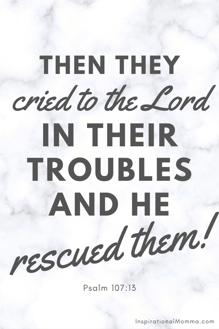 Then they cried to the Lord in their troubles, and He rescued them! Psalm 107:13