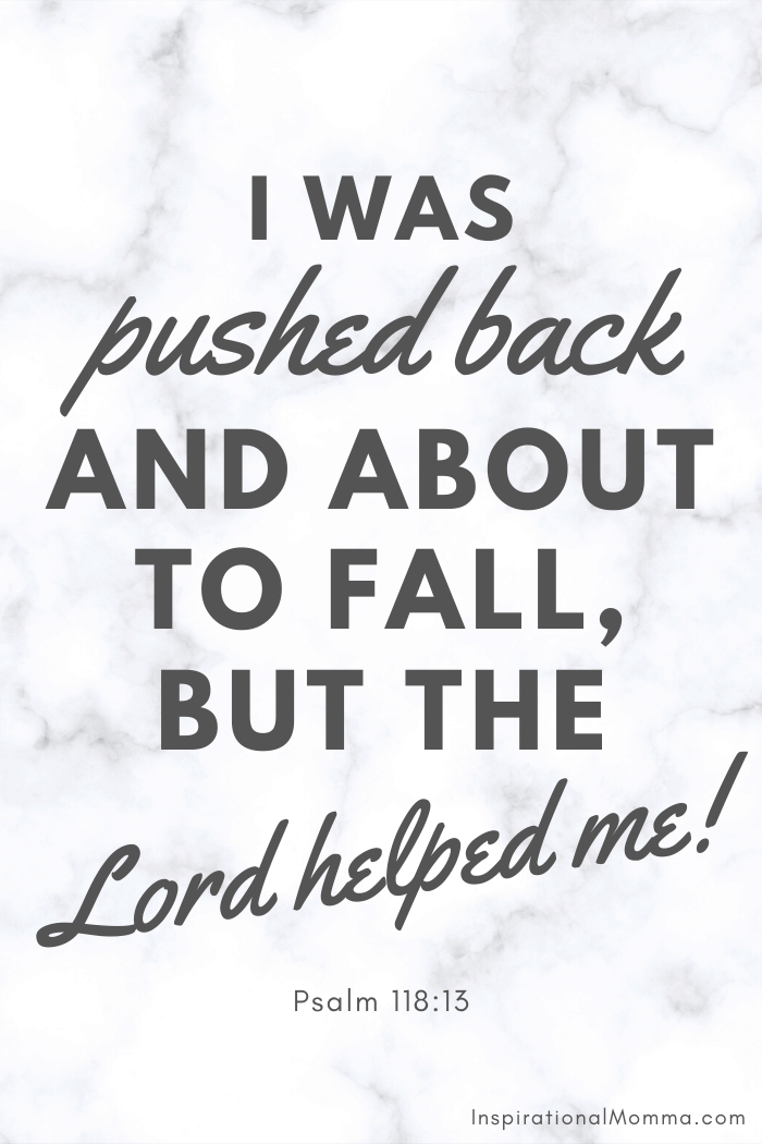 I was pushed back and about to fall, but the Lord helped me. Psalm 118:13
