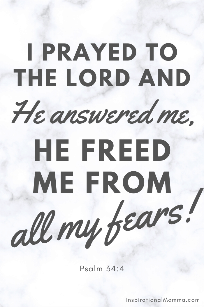I prayed to the Lord and He answered me, He freed me from all my fears. Psalm 34:4