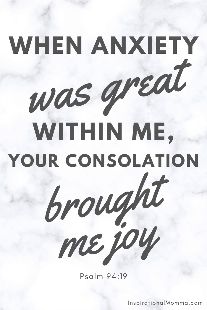 When anxiety was great within me, your consolation brought me joy. Psalm 94:19