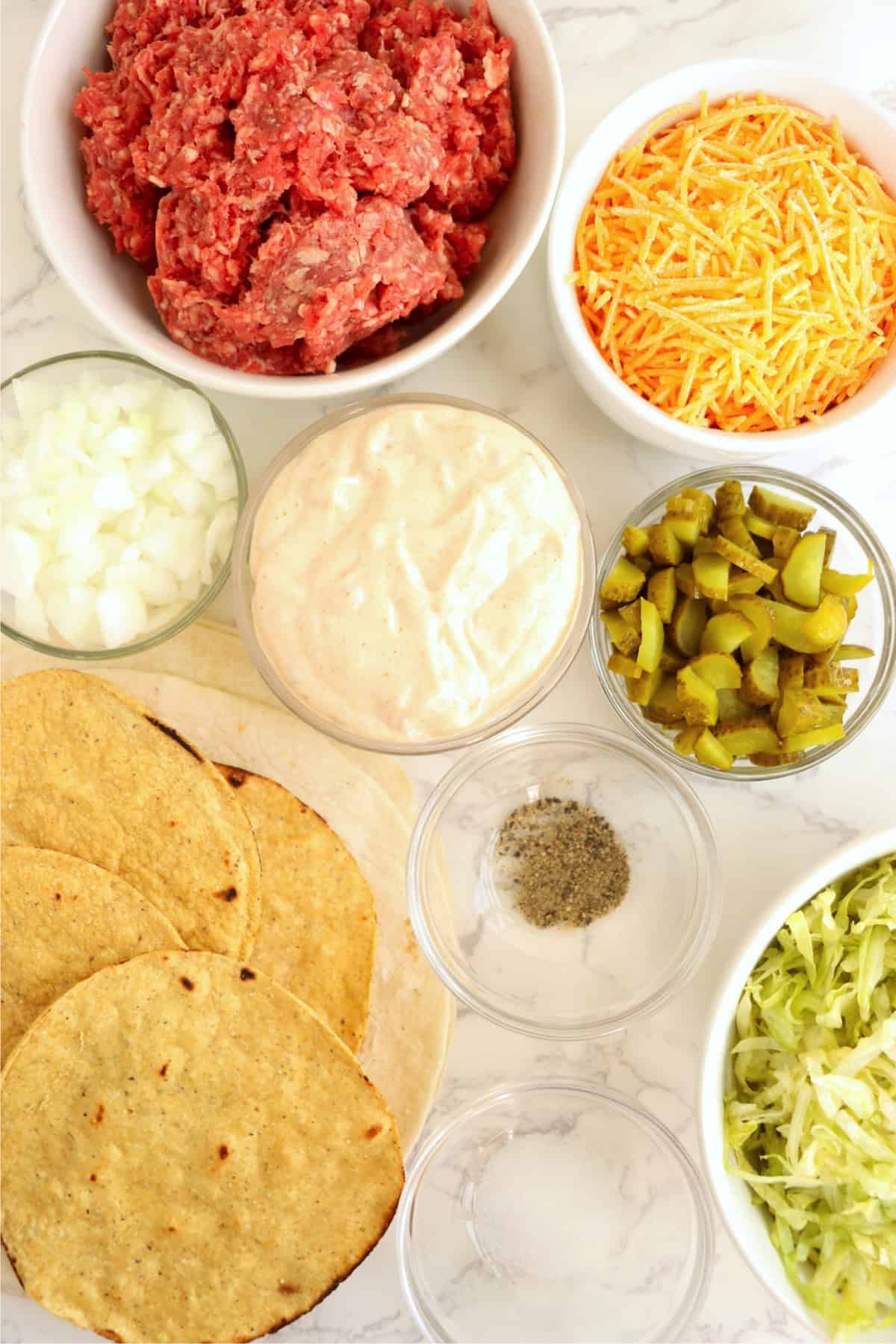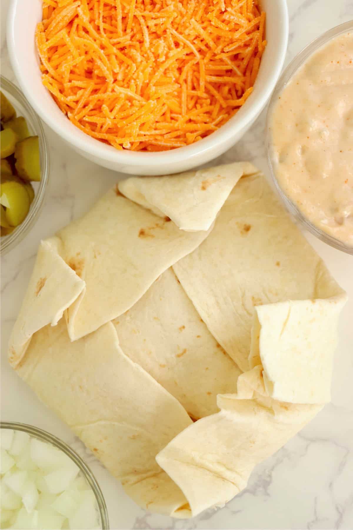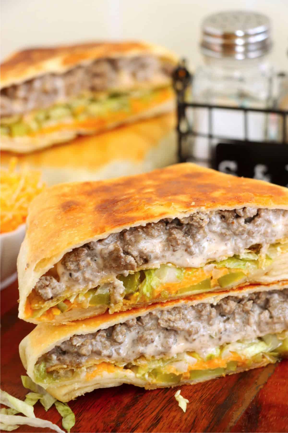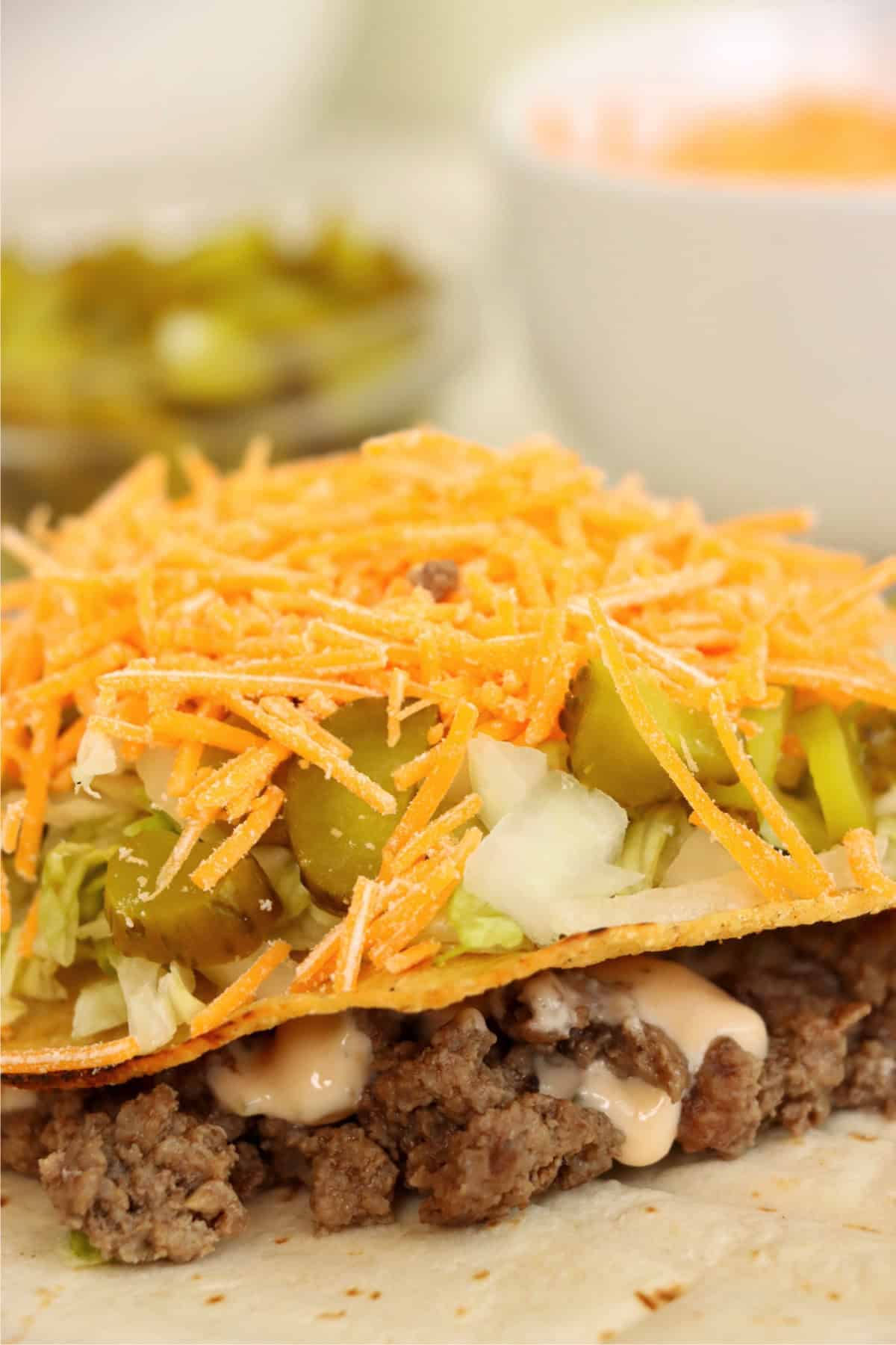 I love a good mashup. Combining different flavors or cooking styles to create a new dish is always so much fun for me. That's what I've done with this crunch wrap. I took all the flavors of a Big Mac and stuffed them into a tortilla to create a dish that's a sort of homemade mashup of McDonald's and Taco Bell.