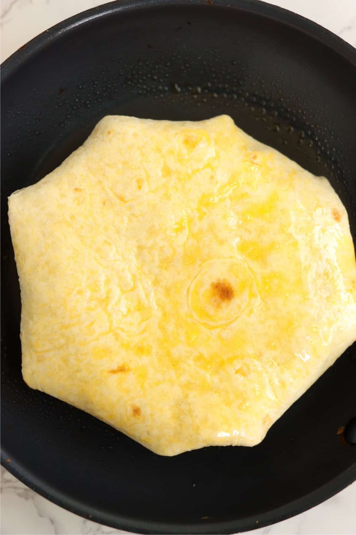 7: Cook the crunch wrap in hot oil until golden on both sides.