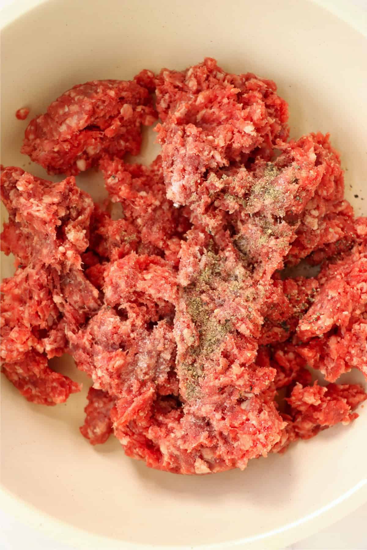 - Add ground beef to a medium skillet over medium-high heat. Season with salt and pepper.