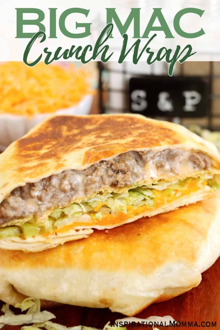 Big Mac crunch wraps stuff a tortilla full of seasoned beef, cheese, lettuce, onions, and Big Mac sauce. Pan-fry it until crispy.
