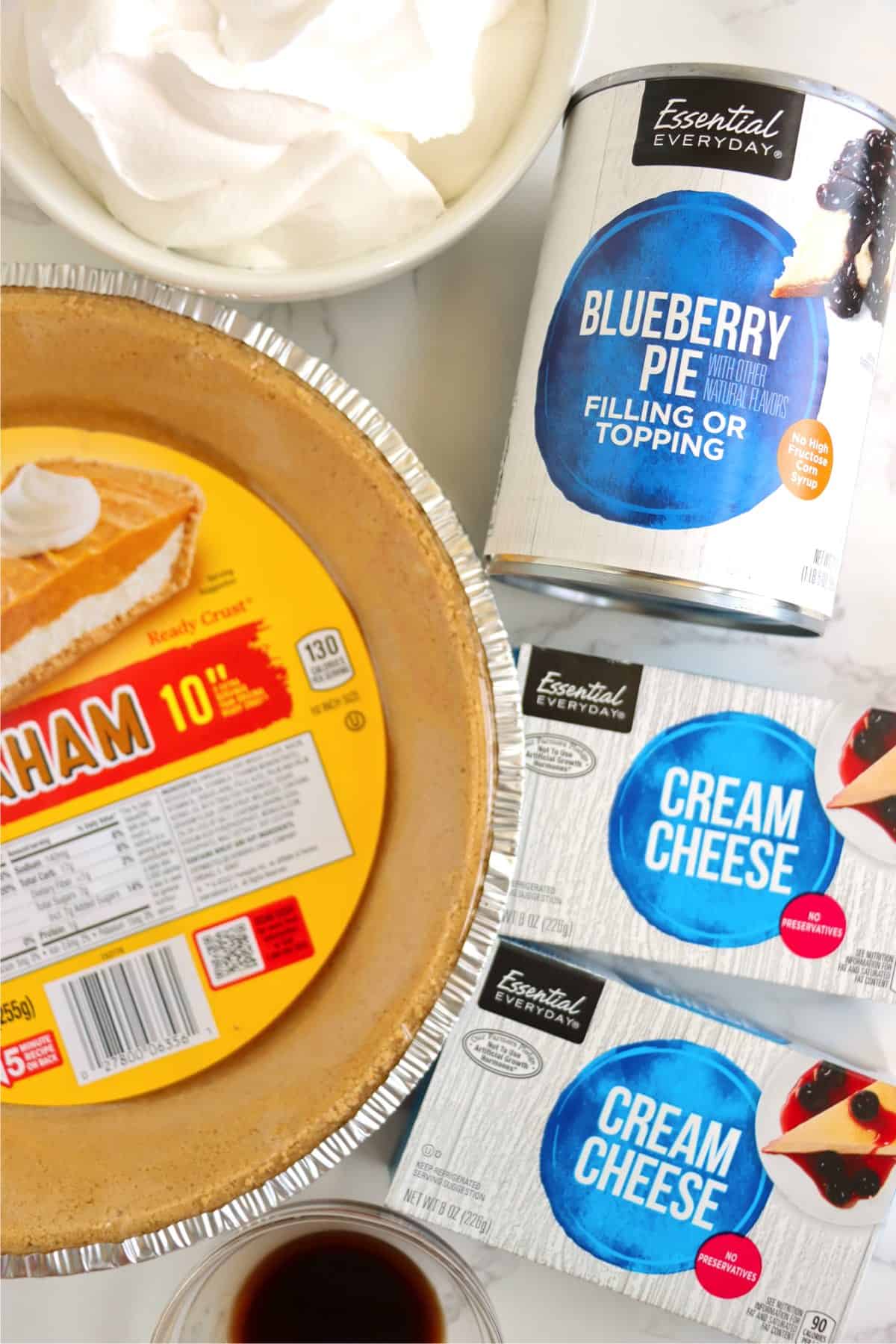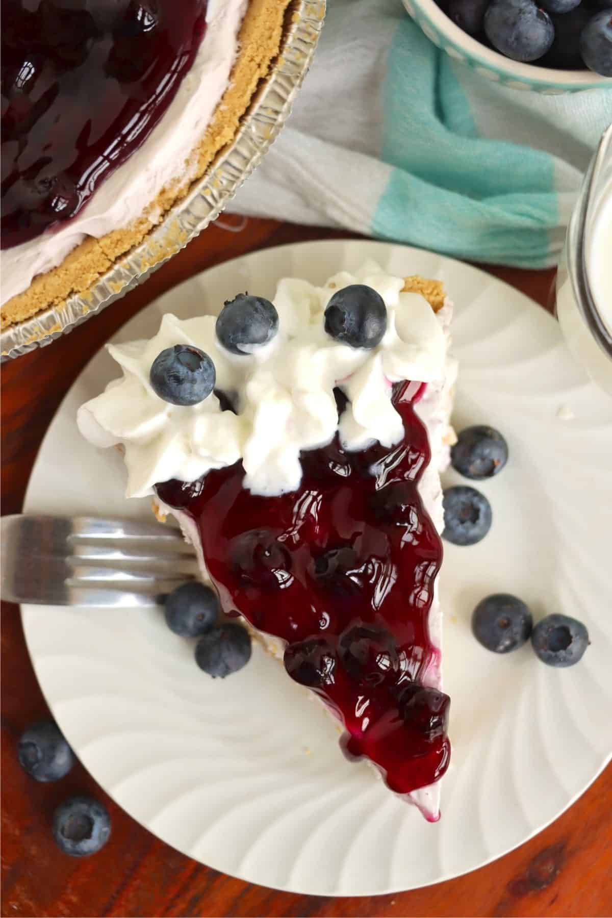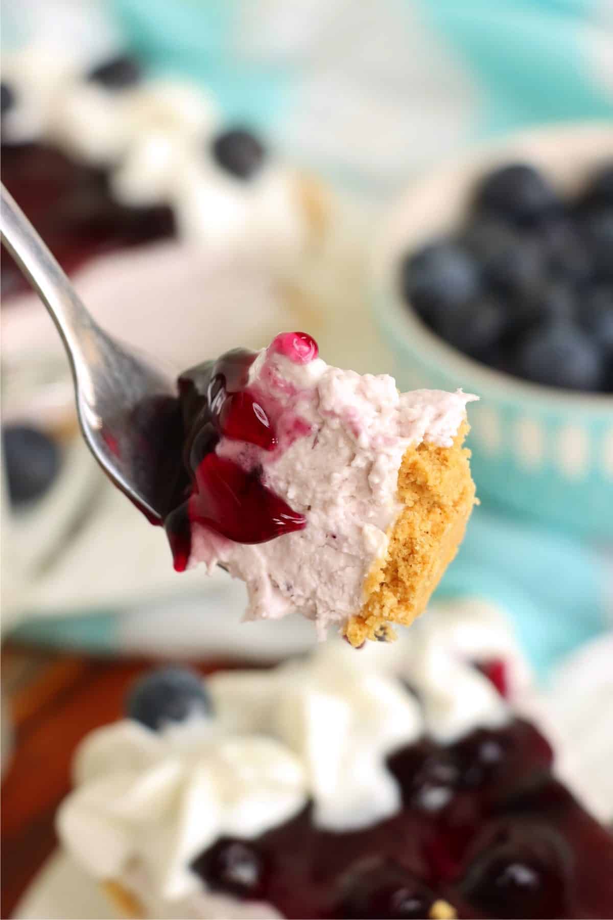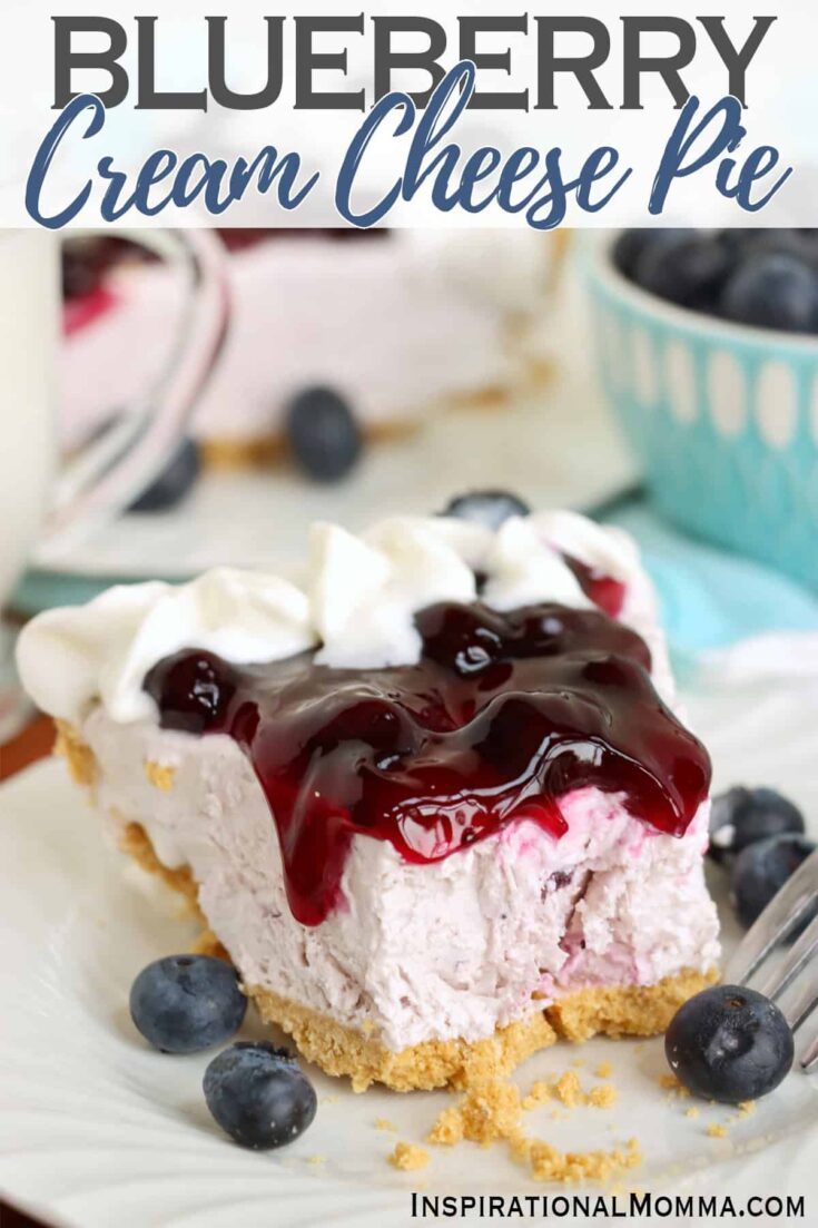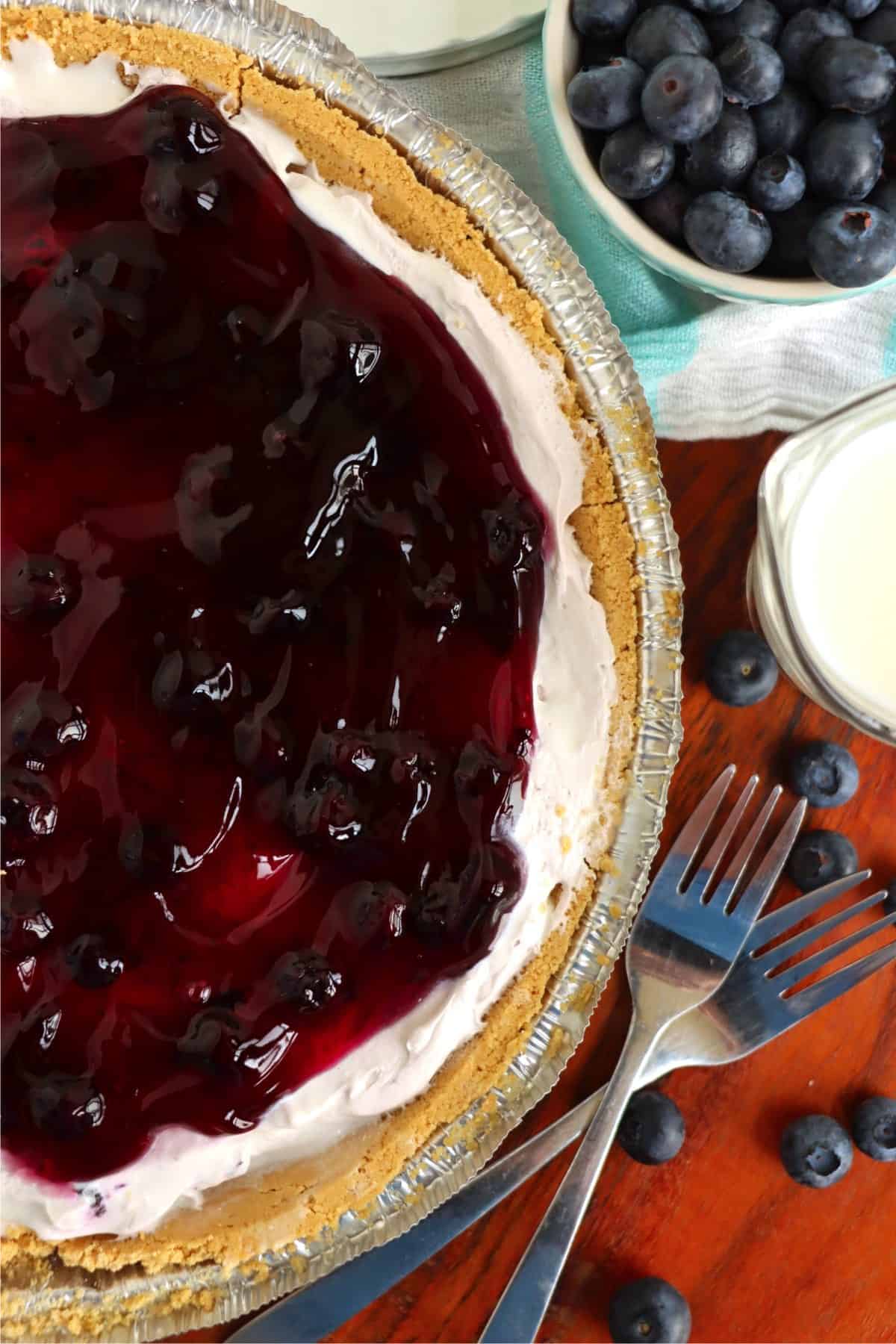 Blueberry cream cheese pie is a no bake cheesecake variation that combines no bake cheesecake filling with blueberry pie filling for a rich, creamy, blueberry cream cheese layer.