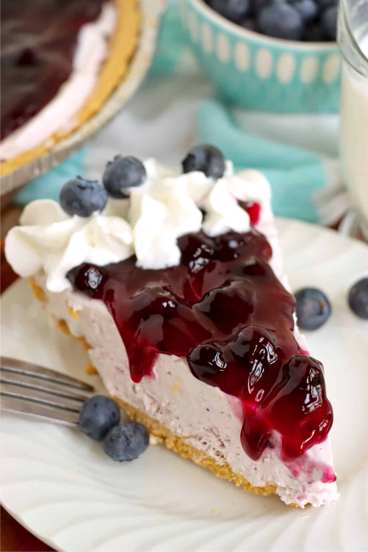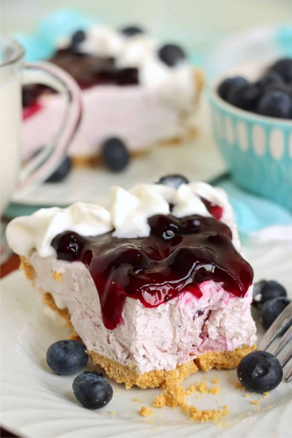 This blueberry cream cheese pie recipe is a rich, creamy, no bake cheesecake loaded with blueberry flavor. Dig in!