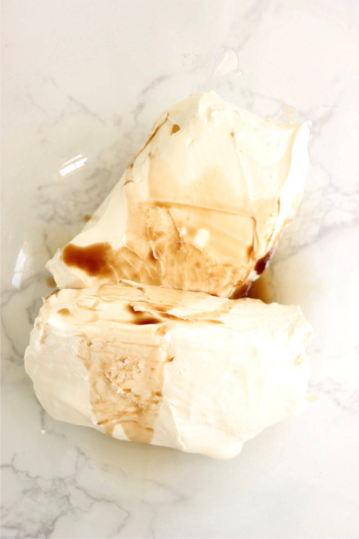 - In a medium mixing bowl, beat cream cheese and vanilla until smooth.