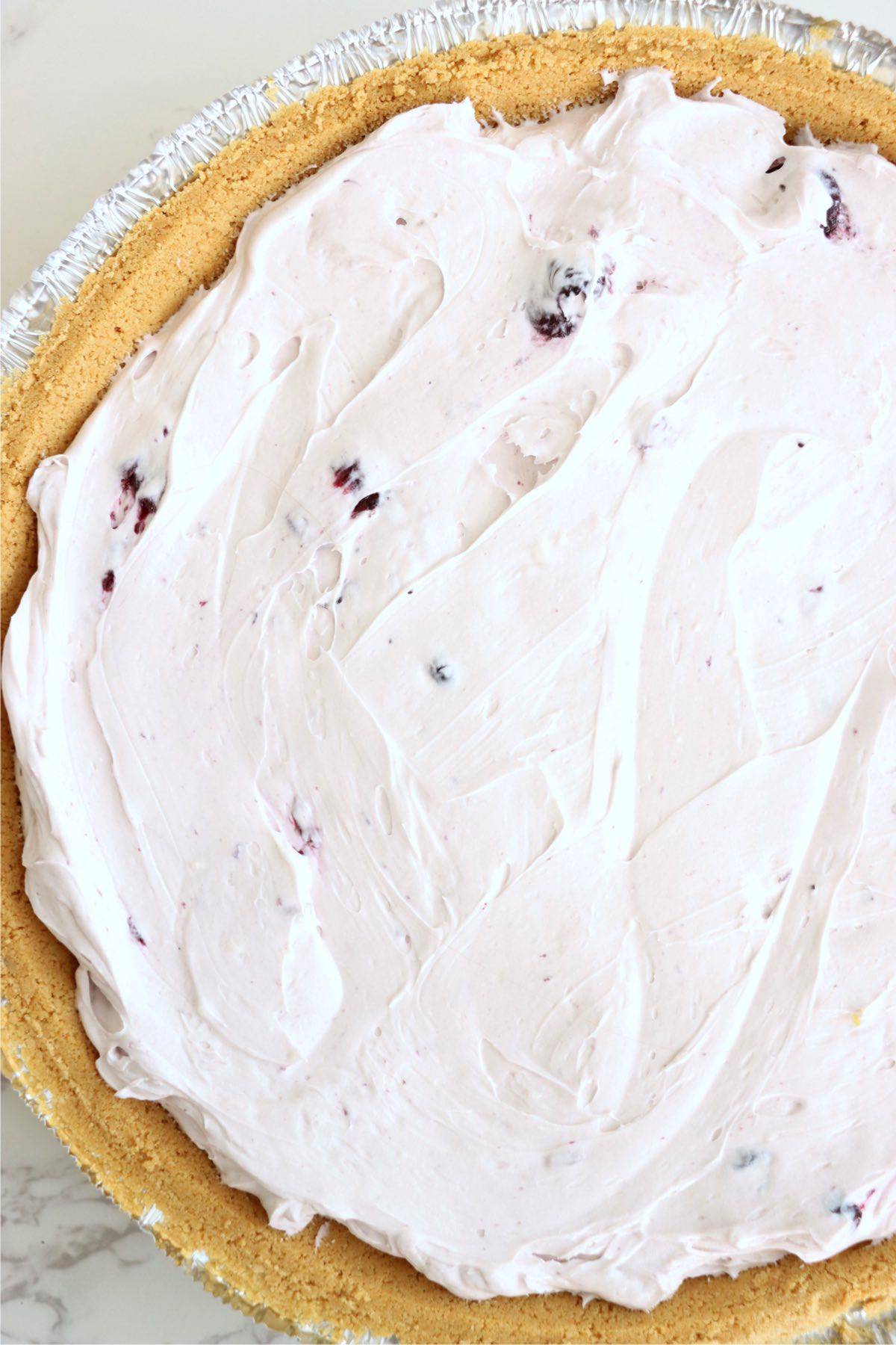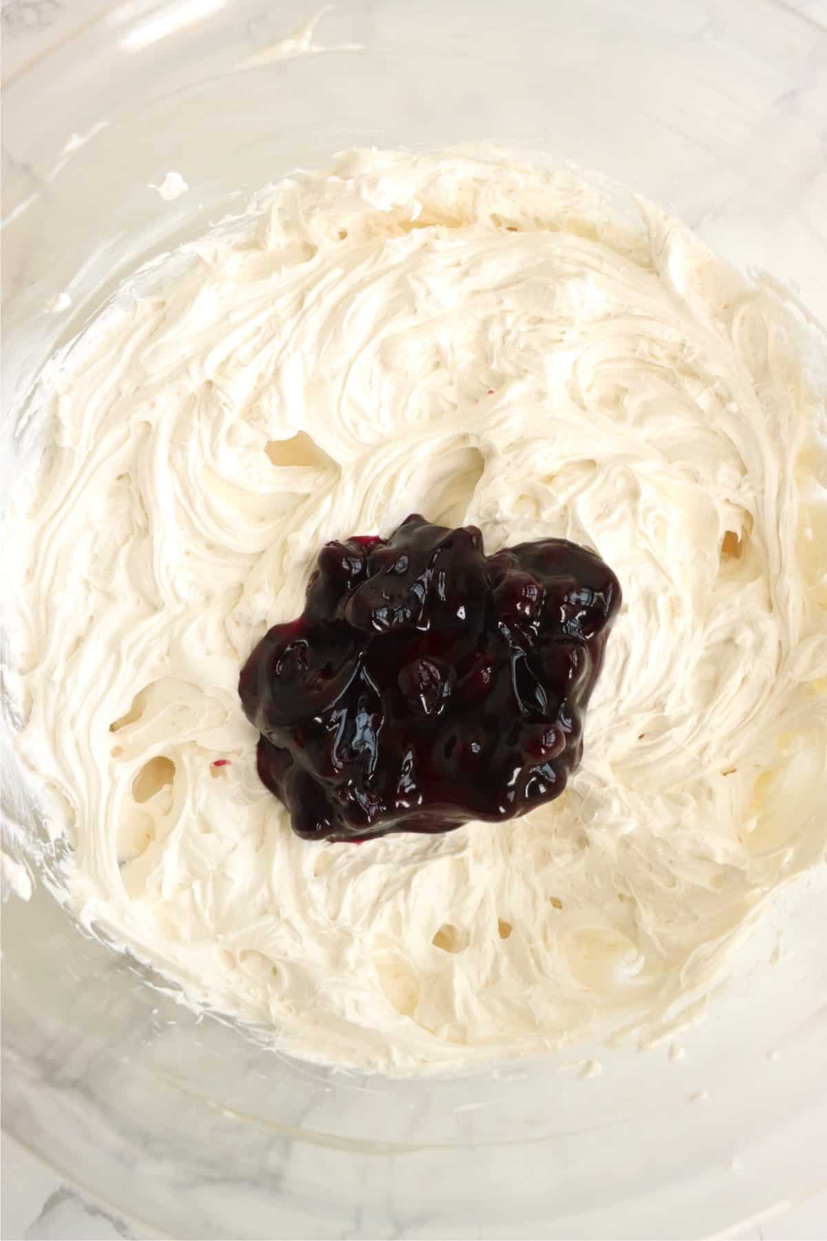 - Add ¼ cup of blueberry pie filling. Using a spatula, stir just until mixed.