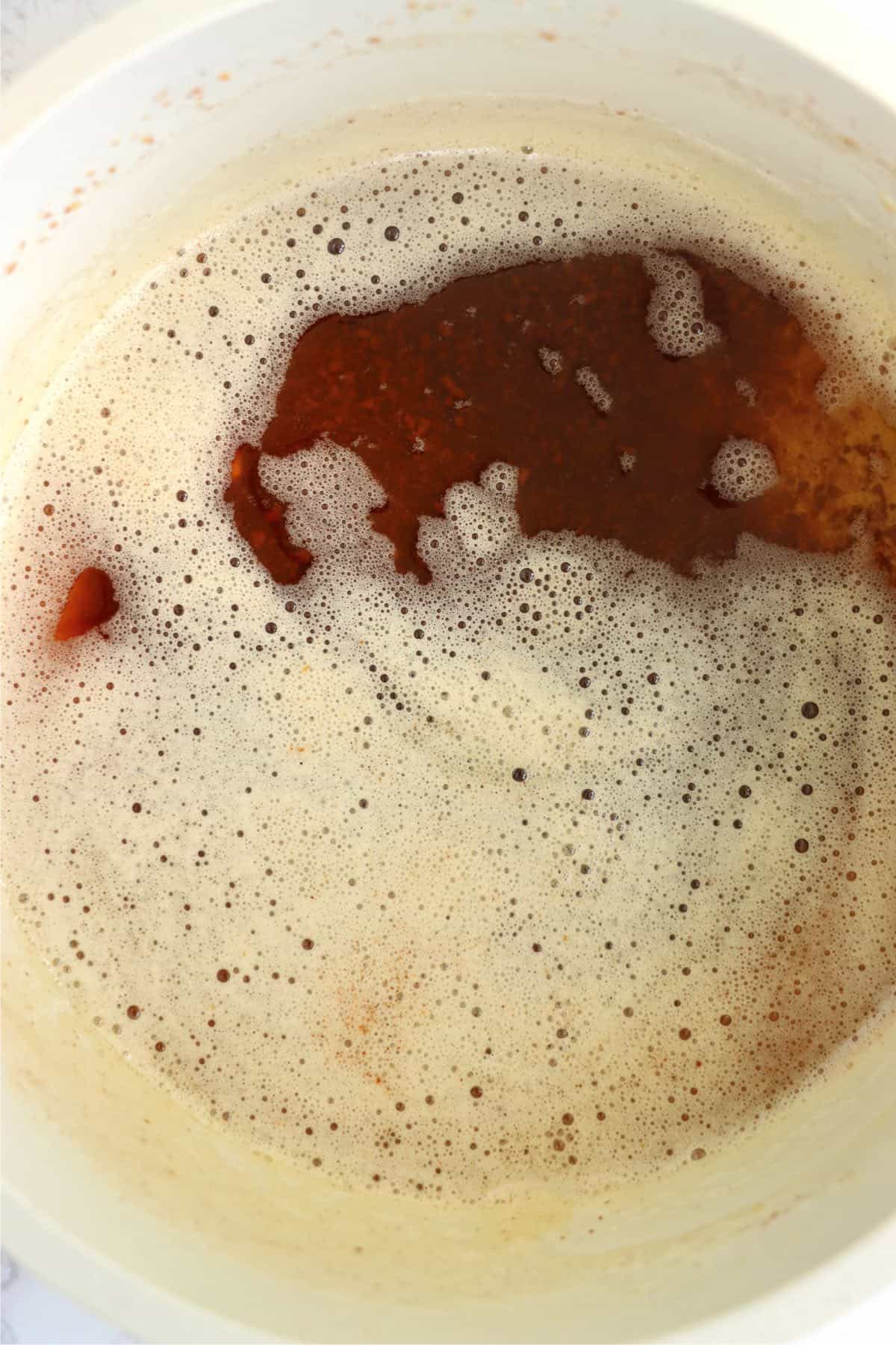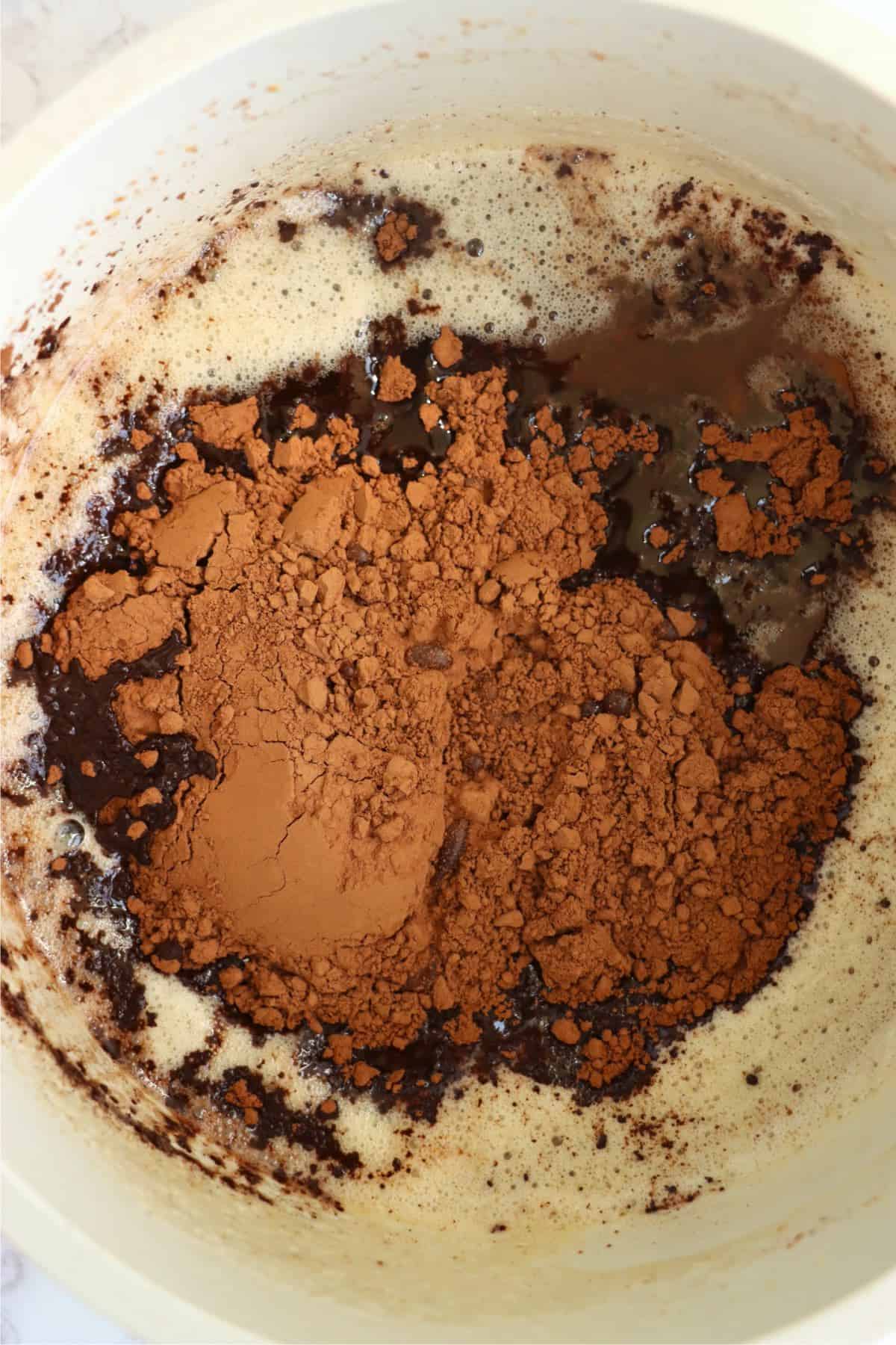 - Add cocoa powder and vanilla to browned butter. Whisk until smooth.