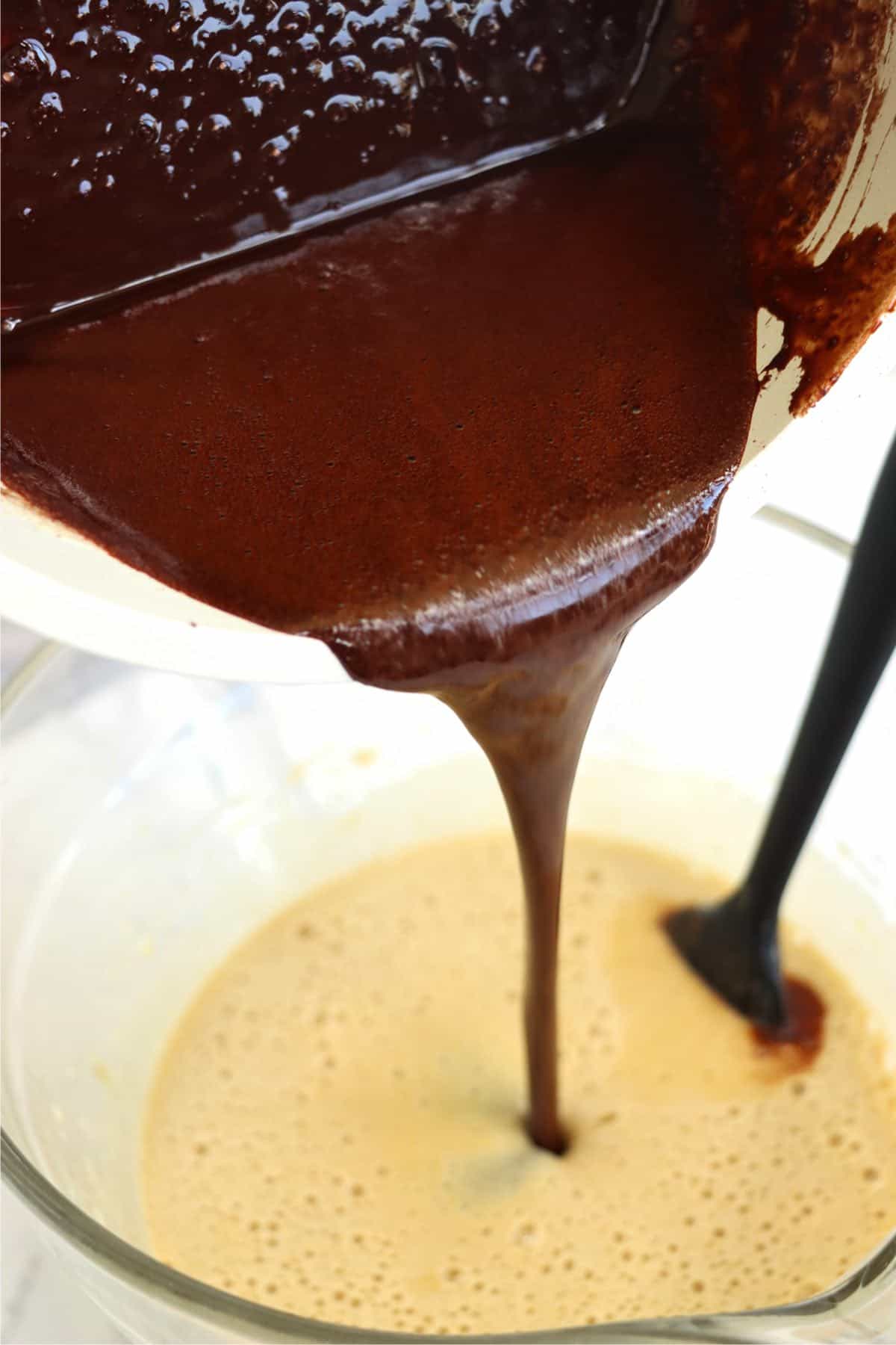 3: Beat the sugar and eggs, then combine them with the cocoa mixture.